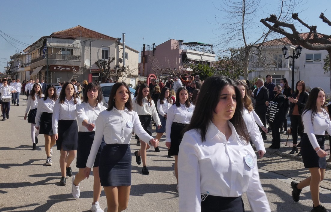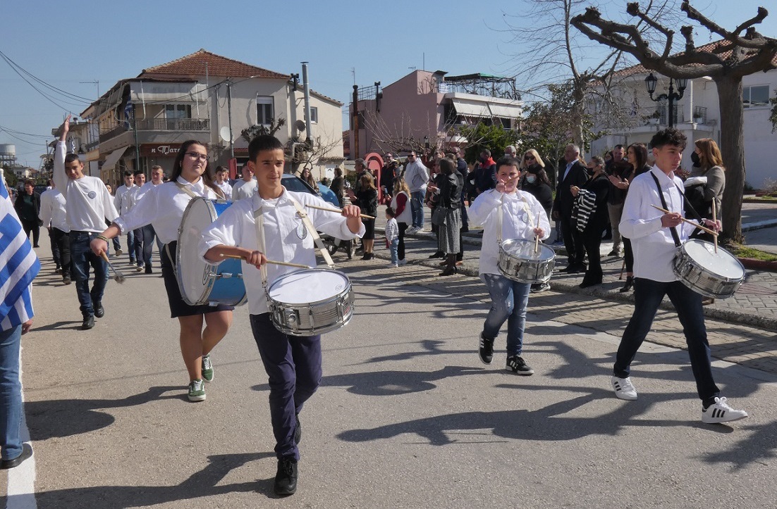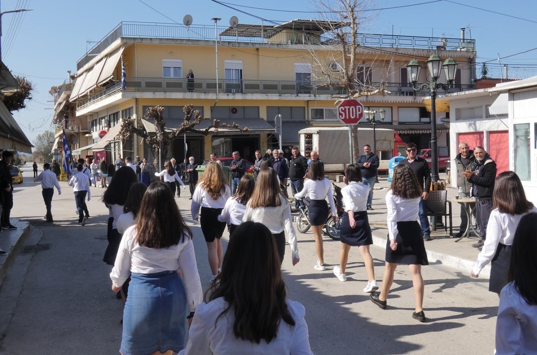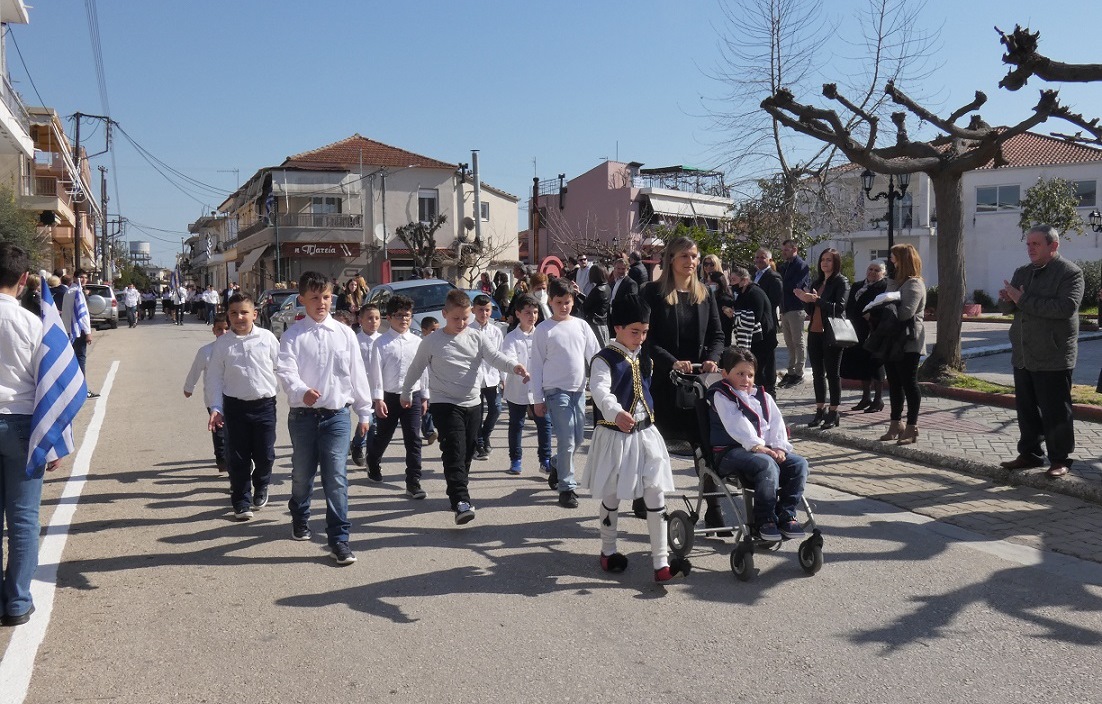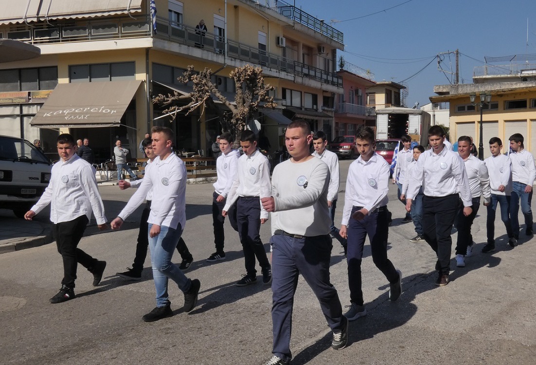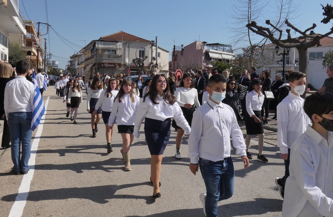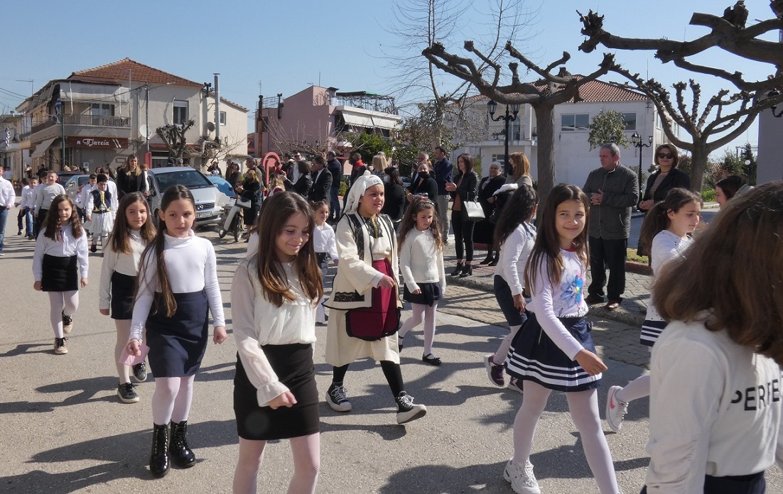 Αμέσως μετά, με μια ηλιόλουστη και λαμπερή μέρα, στους κεντρικούς δρόμους του χωριού μας, οι κάτοικοι παρακολούθησαν και χειροκρότησαν την παρέλαση των μαθητών του Νηπιαγωγείου, του Δημοτικού Σχολείου και του Γυμνασίου Καλυβίων, για να ολοκληρωθεί η πορεία στο Μνημείο των Πεσόντων, όπου τελέσθηκε η επιμνημόσυνη δέηση για τους πεσόντες υπέρ Πατρίδος.