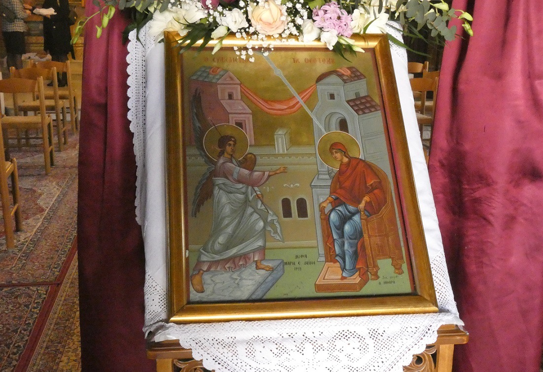 Σήμερα γιορτάζουμε διπλή γιορτή. Γιατί γιορτάζει η Παναγιά, γιορτάζει κι η Πατρίδα. «Σήμερον χαράς Ευαγγέλια». Αιτία αυτής της χαράς είναι τα δύο «Χαίρε»: Το «Χαίρε Κεχαριτωμένη Μαρία» και το «Χαίρε ω Χαίρε Λευτεριά».