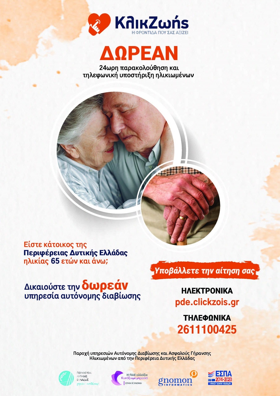 «Παροχή Υπηρεσιών Αυτόνομης Διαβίωσης και Ασφαλούς Γήρανσης Ηλικιωμένων στην Περιφέρεια Δυτικής Ελλάδας»