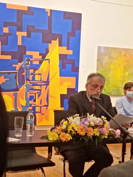 Η εκδήλωση συνεχίστηκε με τα εγκαίνια της εικαστικής έκθεσης του Τμήματος Εικαστικών και Εφαρμοσμένων Τεχνών της Σχολής Καλών Τεχνών του Αριστοτελείου Πανεπιστημίου Θεσσαλονίκης με τίτλο «Ζωγράφος: ιεροφάντης ή διαχειριστής;», η οποία φιλοξενείται στο Κτίριο Χρυσόγελου. Την προλόγισε ο εικαστικός Δημήτρης Ζουρούδης, Καθηγητής του Τμήματος, αναφερόμενος στη σύγχρονη ζωγραφική και στη δυνατότητά της να διαμεσολαβεί ανάμεσα στην ιστορική μνήμη και στην αισθητική εμπειρία του θεατή με τρόπους πολυπλοκότερους από την αναπαραστατική ζωγραφική.