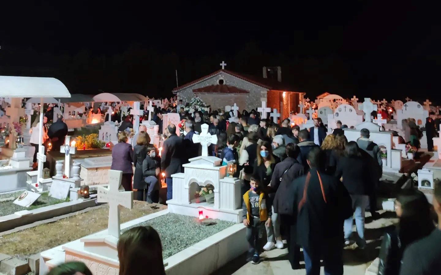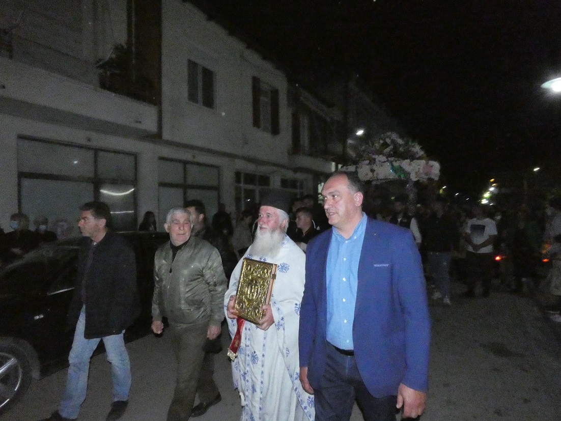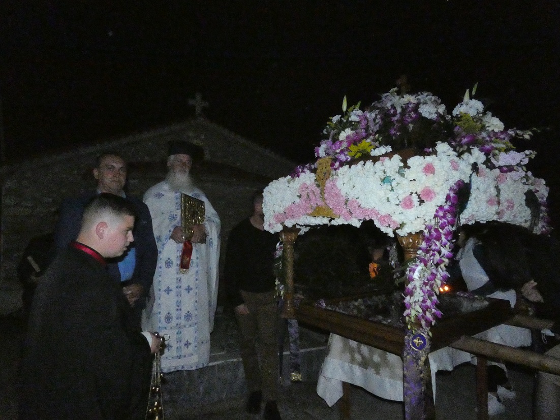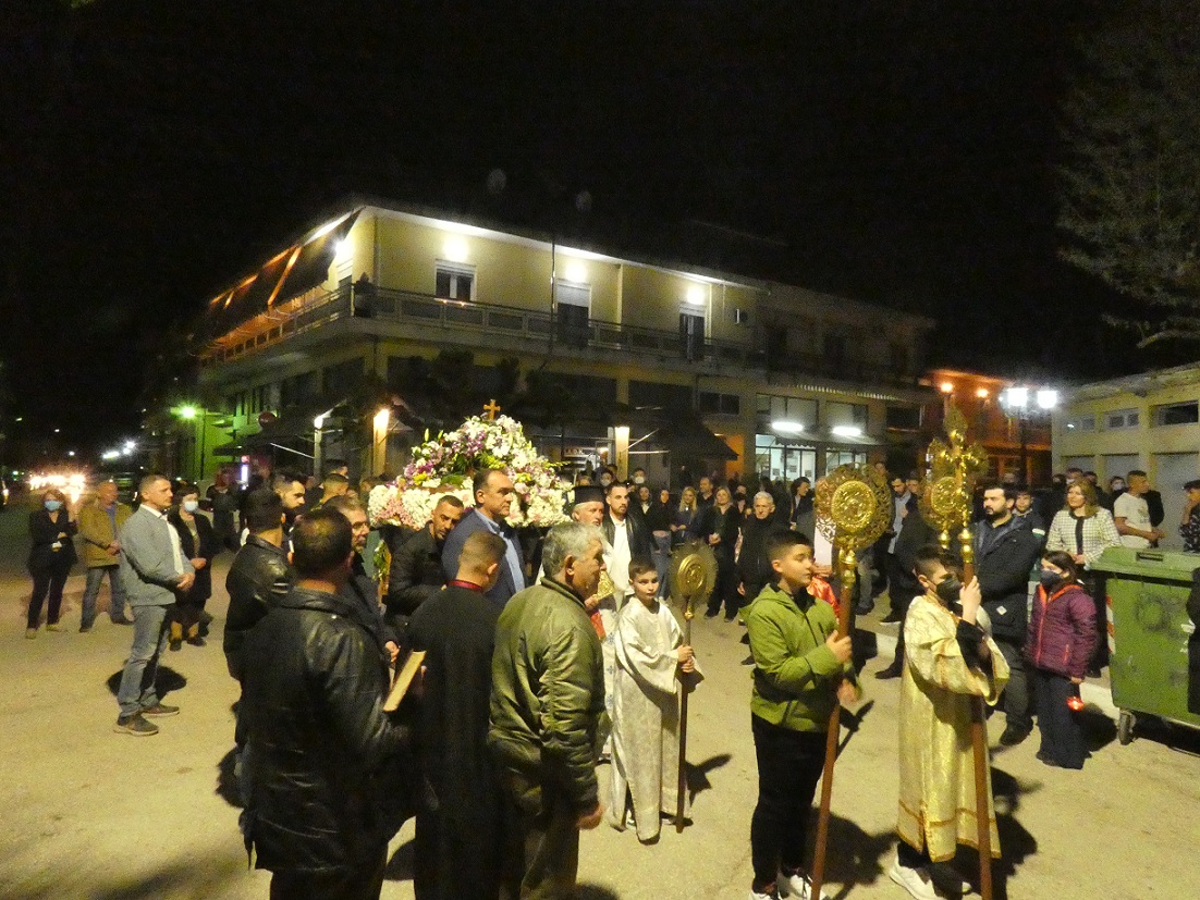 Στη συνέχεια οι πιστοί, κρατώντας αναμμένα κεριά, ακολούθησαν την περιφορά του Επιταφίου γύρω από το ναό, ο οποίος ήταν στολισμένος με πολύχρωμα λουλούδια και κατευθύνθηκαν προς το εξωκλήσι του παλαιού Αγ. Νικολάου.