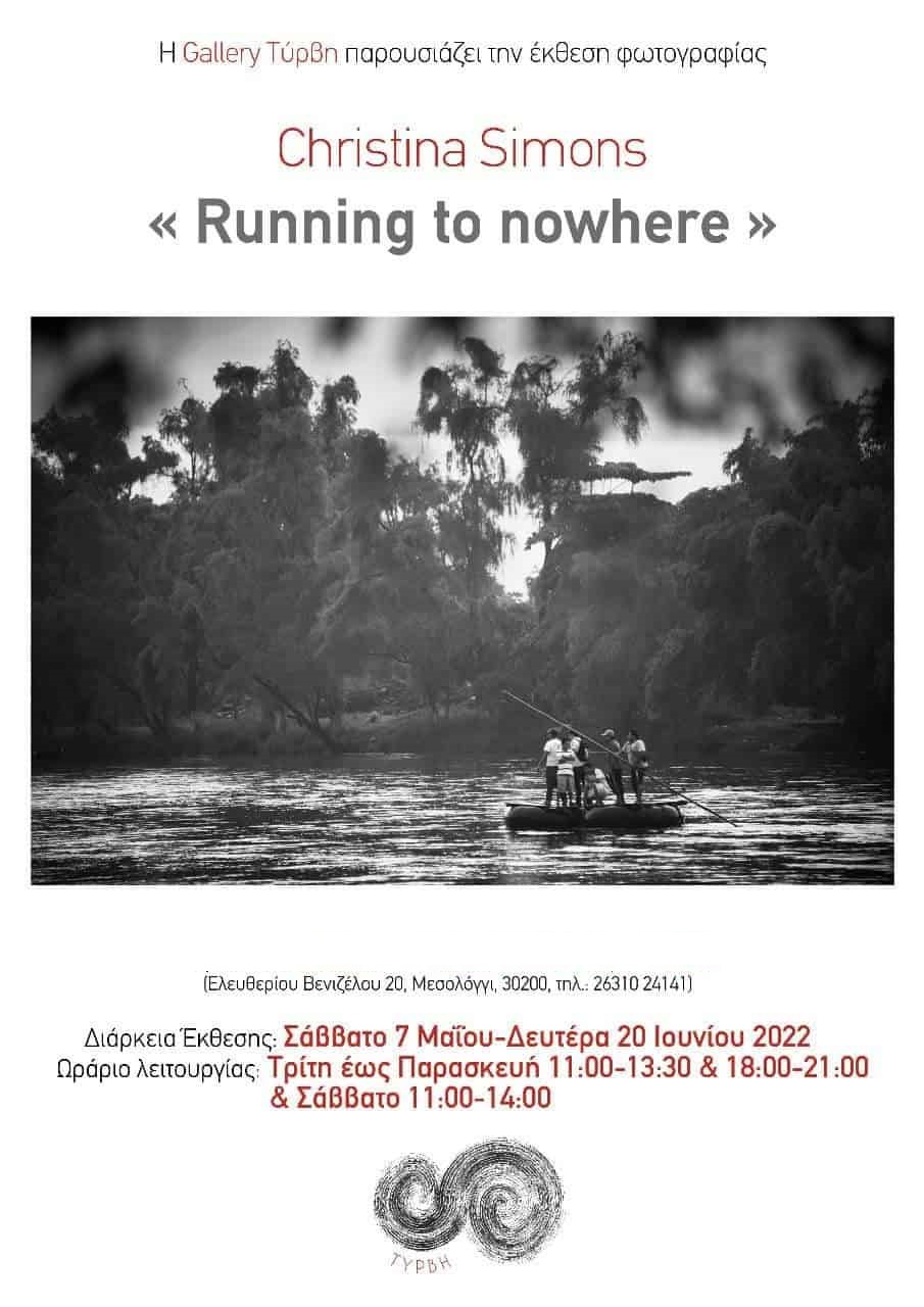 Παρουσία πολλών φιλότεχνων πραγματοποιήθηκαν χθες Σάββατο 7 Μαΐου, στην γκαλερί «Τύρβη» στο Μεσολόγγι, τα εγκαίνια της έκθεσης φωτογραφίας της Κριστίνα Σίμονς, με τίτλο “Running to Nowhere” – «Η προσφυγική κρίση στην Κεντρική Λατινική Αμερική».