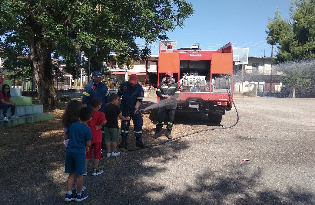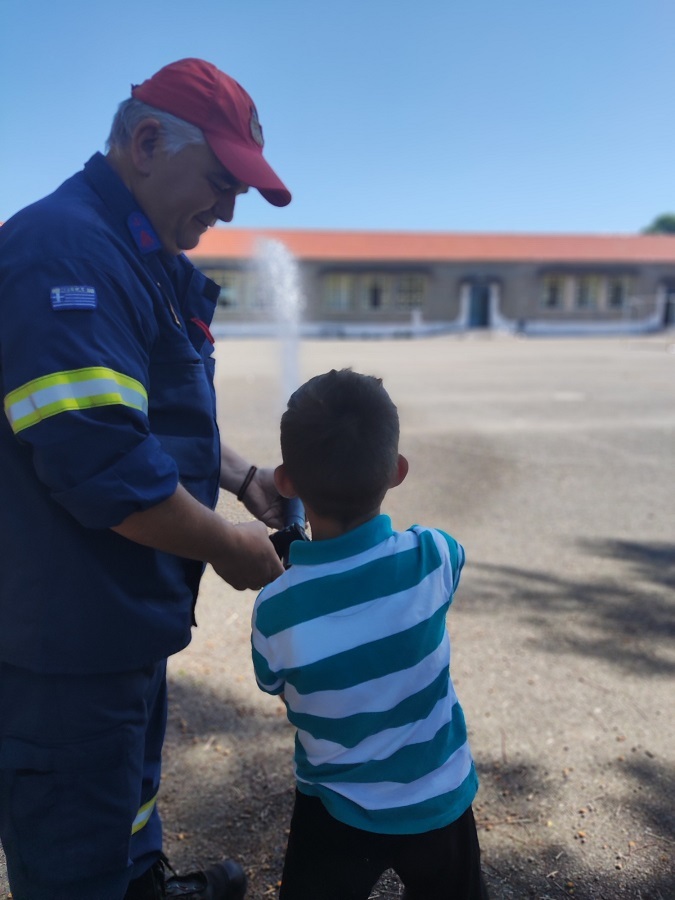 Ακολούθως οι μαθητές, έκαναν ερωτήσεις και συζήτησαν με τους πυροσβέστες τρόπους πρόληψης της πυρκαγιάς στο σπίτι ή στο δάσος καθώς και την απόκτηση καλών πρακτικών σε καταστάσεις κινδύνου, ενώ έλυσαν όλες τις απορίες τους. Τονίστηκε επίσης η προσφορά του Πυροσβεστικού Σώματος στην κοινωνία μας και στη συνέχεια με την καθοδήγηση των πυροσβεστών, έριξαν νερό με τη μάνικα του Πυροσβεστικού οχήματος. Μαθητές και εκπαιδευτικοί παρακολούθησαν με ενδιαφέρον την πολύ ενδιαφέρουσα ενημέρωση. Τέλος, αναχωρώντας από το σχολείο οι πυροσβέστες αποχαιρέτησαν τα παιδιά με την ¨σειρήνα¨ του πυροσβεστικού οχήματος!