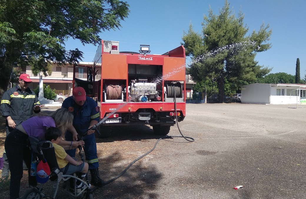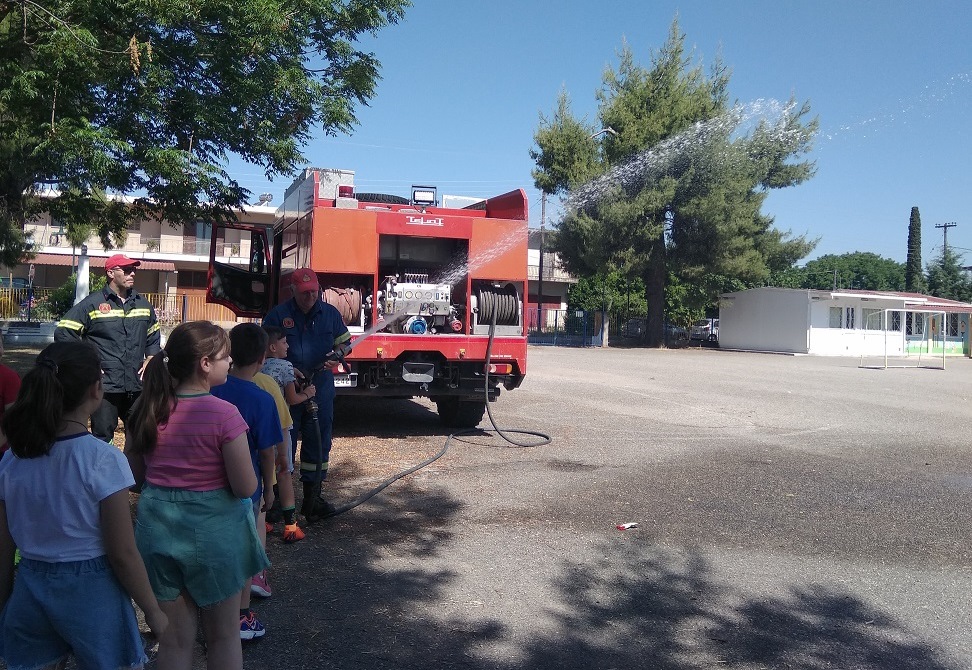 Επικεφαλής ήταν ο Επιπυραγός Κωνσταντίνος Σερέτης, μαζί με δυο πυροσβέστες και ένα πυροσβεστικό όχημα ενημέρωσαν εκπαιδευτικούς και μαθητές για θέματα προστασίας (σεισμό, φυσική καταστροφή, άλλα συμβάντα) και πυροπροστασίας τόσο όσον αφορά το χώρο του σπιτιού, αλλά και σε άλλους χώρους ή περιστάσεις.