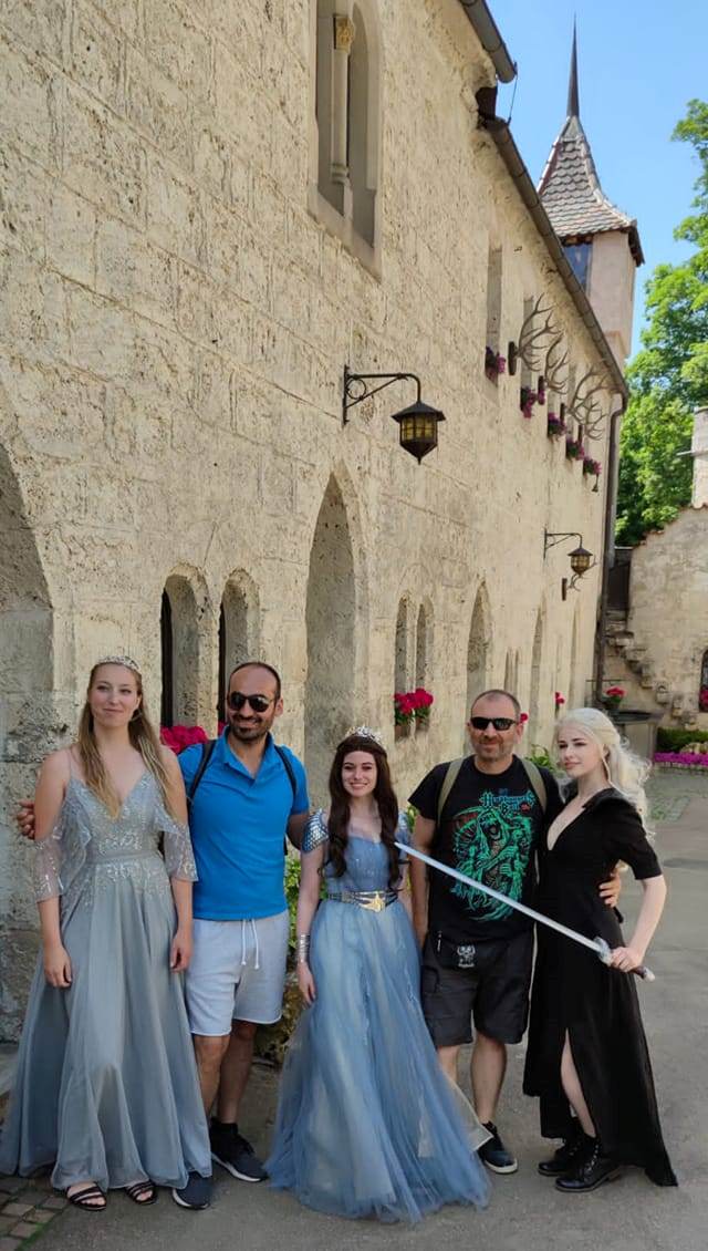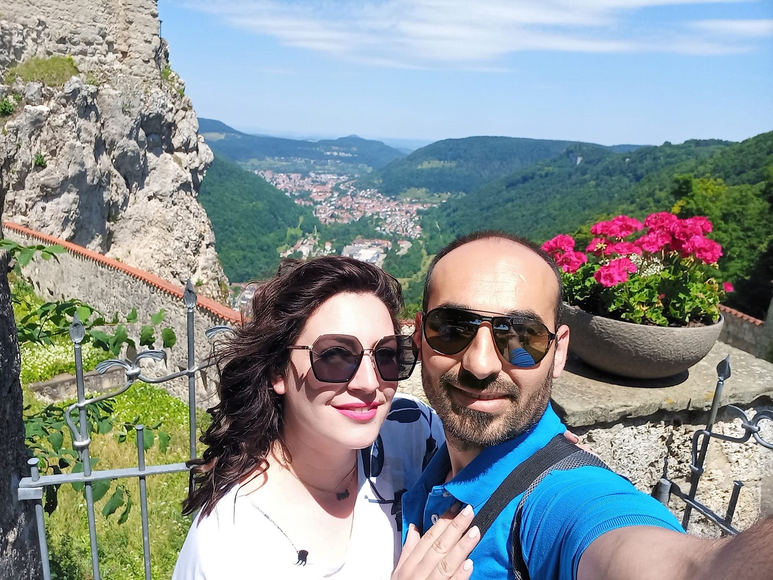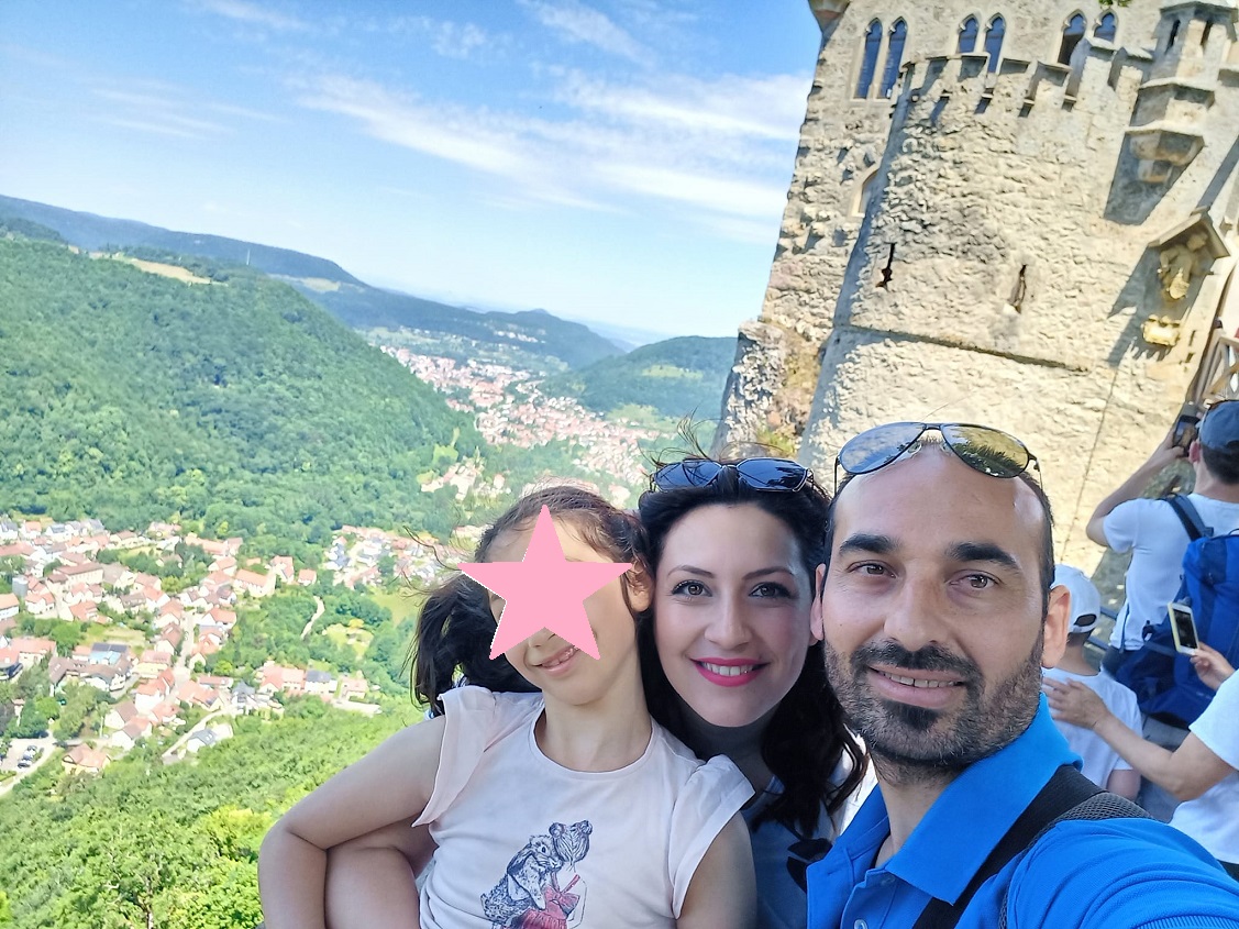 Βέβαια για να περάσεις όμορφα σε μία εκδρομή πιστεύω ότι απαραίτητη προϋπόθεση είναι η καλή παρέα, καλά τα αξιοθέατα αλλά έχουν αξία μόνο αν τα δεις έχοντας κοντά σου πραγματικούς φίλους! Έτσι λοιπόν, μαζί με τον φίλο μου Βαγγέλη και την οικογένειά του, ξεκινήσαμε το ταξίδι μας για το κάστρο, το οποίο βρίσκεται περίπου 100 χιλιόμετρα από την περιοχή της Στουτγάρδης, όπου κατοικούμε τα τελευταία χρόνια. Όταν φτάσαμε στον προορισμό μας, τα αυτοκίνητα είχαν σχηματίσει τεράστια ¨ουρά¨ λόγο της αργίας. Η θέα του τοπίου πάντως είναι εντυπωσιακή, πού μόνο θετική ενέργεια μπορεί να σου προσφέρει».