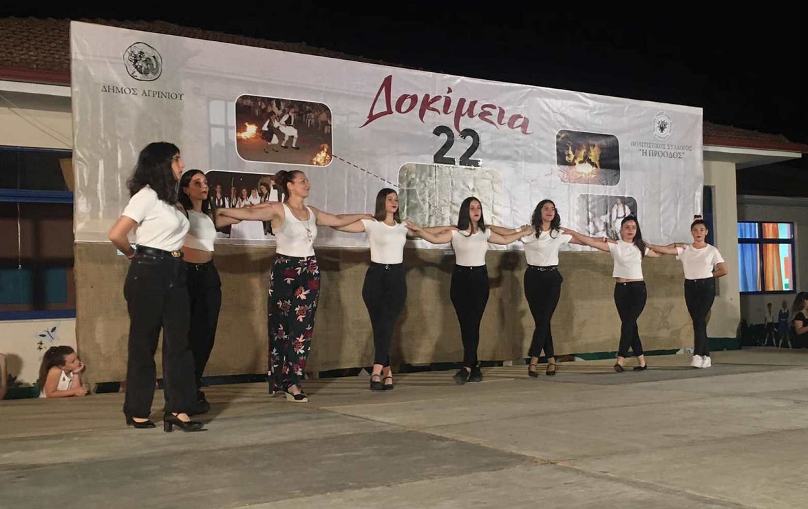 Στην παράσταση των Χορευτικών τμημάτων συμμετείχαν από τον Πολιτιστικό Σύλλογο Δοκιμίου τα τμήματα: Ά Παιδικό, Β’ Παιδικό, εφηβικό τμήμα Δοκιμίου,16ο Δημοτικό σχολείο Αγρινίου και Εφηβικό τμήμα Καλυβίων.