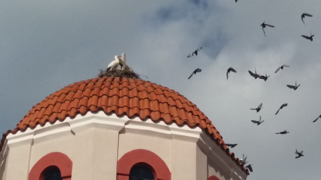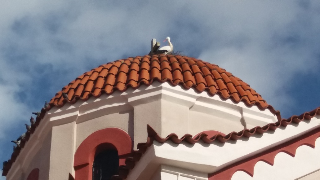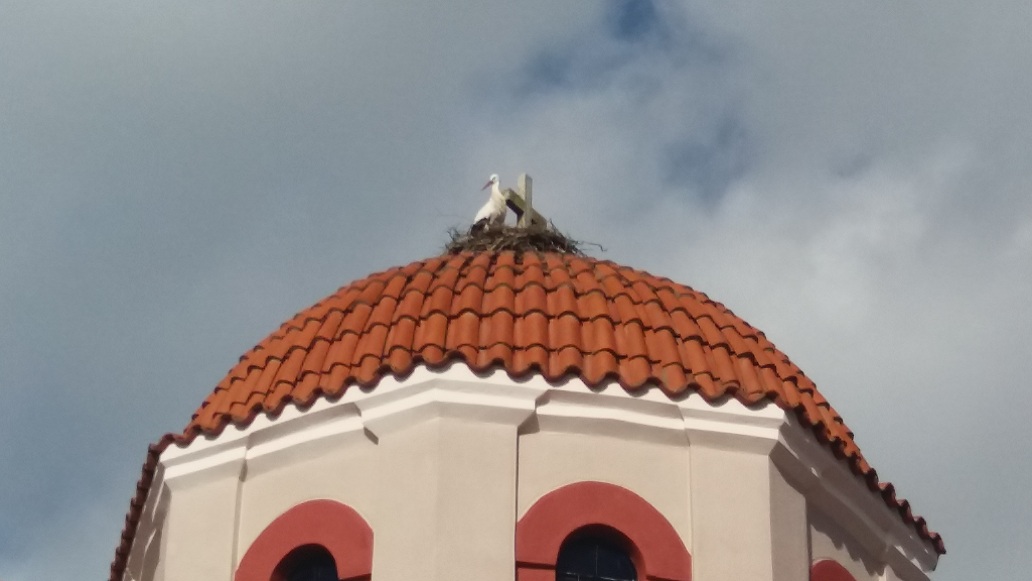 Όπως μας είπαν, συχνά πυκνά, ιδιαίτερα τις νυχτερινές ώρες, ο πελαργός φωλιάζει στον τρούλο της εκκλησίας, ενώ κατά τη διάρκεια της ημέρας αναζητεί τροφή!