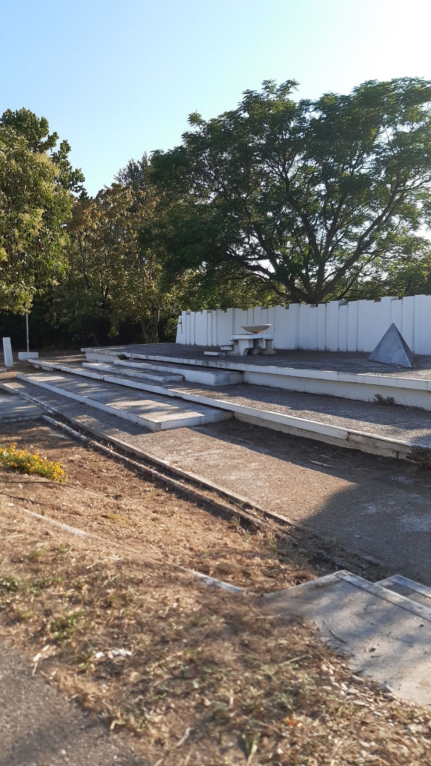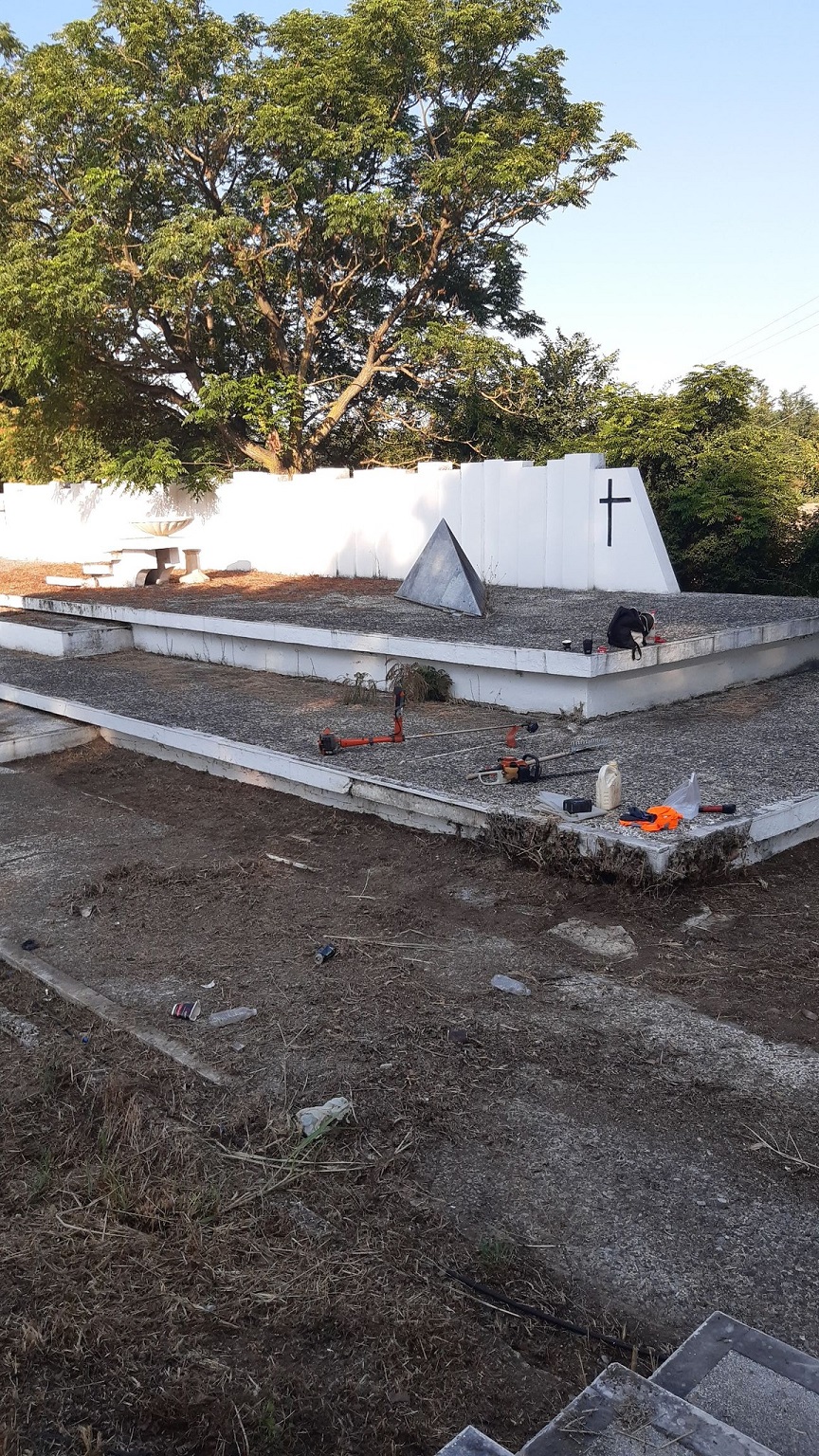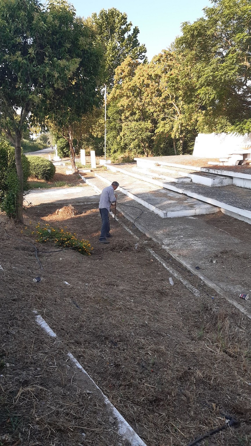 Καθαρίστηκε ο περιβάλλων χώρος από τα αγριόχορτα και κλαδεύτηκαν δέντρα, θάμνοι και κόπηκαν βάτα περιμετρικά του μνημείου.