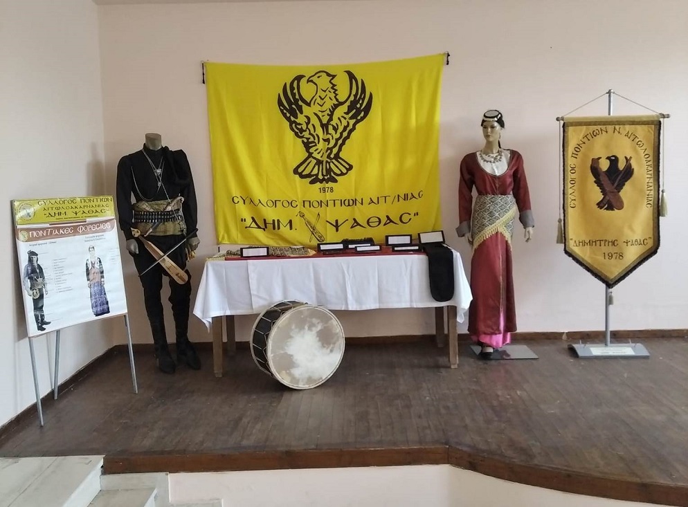 Πρόκειται ουσιαστικά για δυο εκθέσεις που παρουσιάζονται στον ίδιο χώρο, η πρώτη έχει τον τίτλο «Νοσταλγίες – αντικείμενα που κουβαλούν μνήμες από το χτες» και προετοιμάστηκε από τον Σύλλογο Γυναικών Καλυβίων και η δεύτερη έκθεση με τίτλο «Ταξίδι στην Παράδοση και την Ιστορία» προβάλλει εικόνες και πρόσωπα από την περίοδο της Ιταλο-γερμανικής κατοχής (1941-1944) στην περιοχή μας, καθώς επίσης αντικείμενα και αρχειακό φωτογραφικό υλικό που προέρχονται από τις συλλογές του Συλλόγου Μικρασιατών Αιτωλοακαρνανίας και του Συλλόγου Ποντίων ¨Δημήτριος Ψαθάς¨.