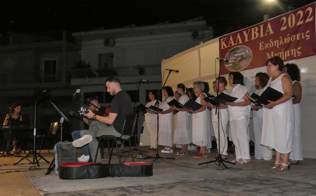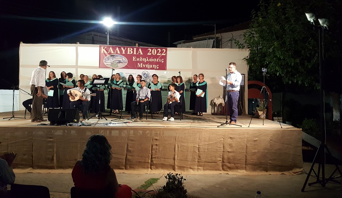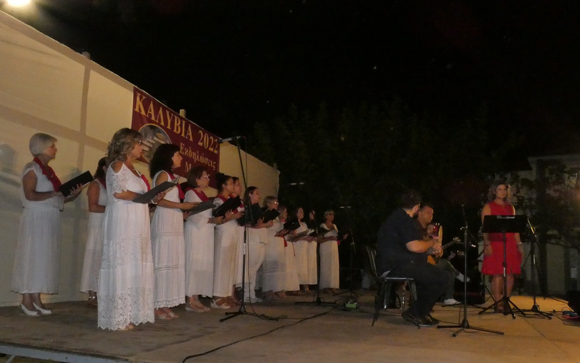 - Η Γυναικεία Χορωδία Καλυβίων ¨Άγιος Νικόλαος¨ σε σύμπραξη με την Χορωδία του Συλλόγου Γυναικών Σταμνάς ¨η Αγία Αγάθη¨. Τα τραγούδια με συνοδεία παραδοσιακής μουσικής ορχήστρας ήταν: