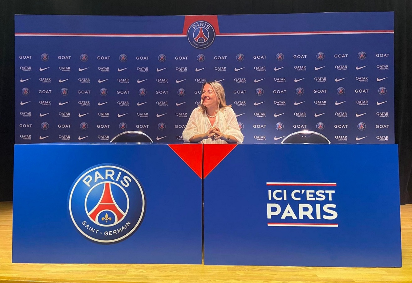 Η Βίκυ Μπαλωμένου στις εγκαταστάσεις του Πάρκ ντε Πρενς, έδρα της διάσημης Γαλλικής ομάδας Παρί Σεν Ζερμέν