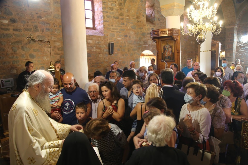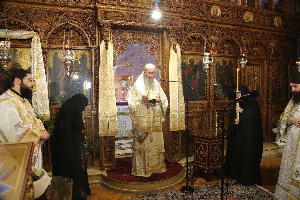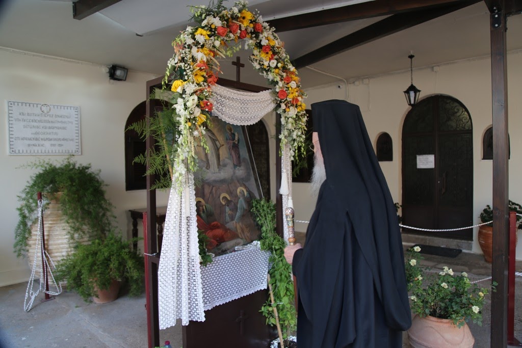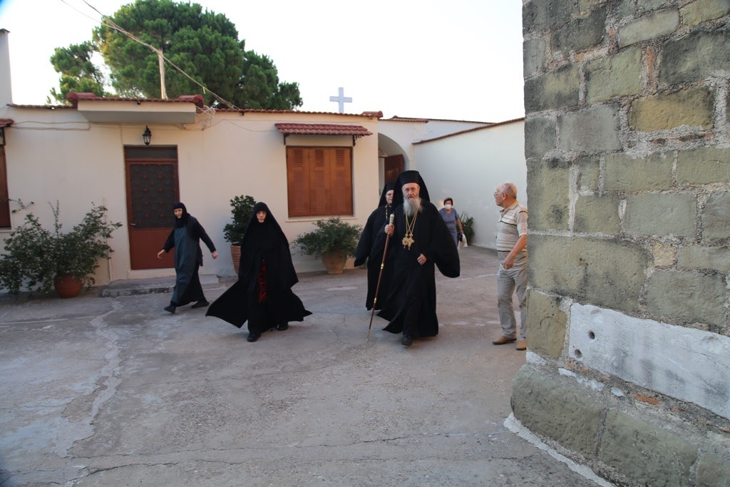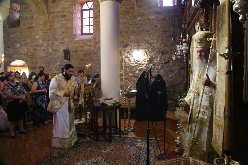 Πριν την απόλυση της Θείας Λειτουργίας ο Σεβασμιώτατος, κατά την καθιερωμένη τάξη της Εκκλησίας, ευλόγησε τα σταφύλια που προσέφεραν στην Μονή ευλαβείς προσκυνητές.