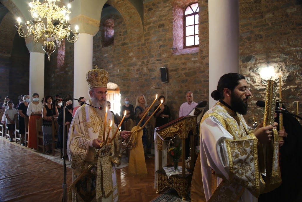 Με τον Σεβασμιώτατο συλλειτούργησαν ο αρχιμ. Σιλουανός Ψιλλιάς και οι διάκονοι π. Παΐσιος Παρασκευάς και π. Στέφανος Καππές. Τους ύμνους της εορτής απέδωσαν οι πρωτοψάλτες κ. Γεώργιος Γαρουφαλής και κ. Γεώργιος Βλάχος.