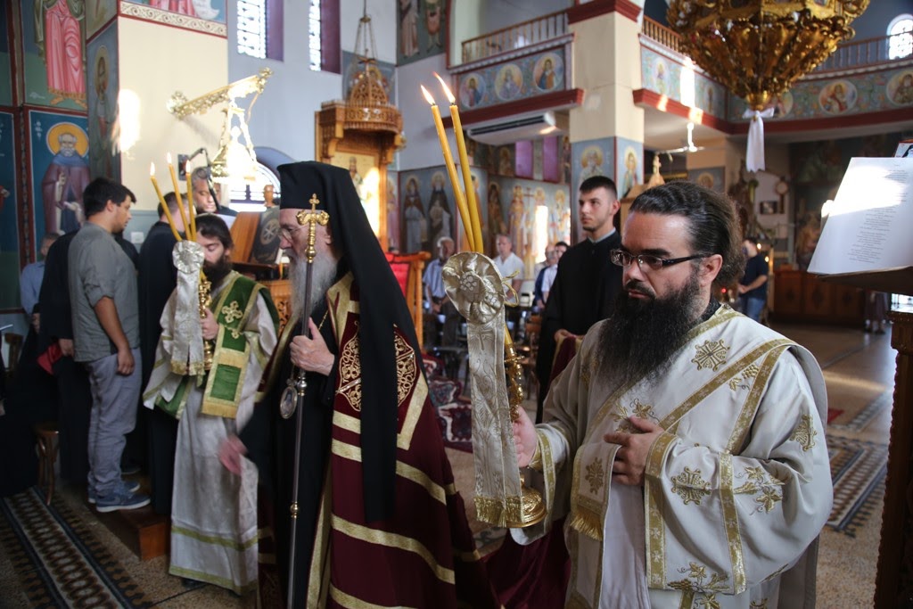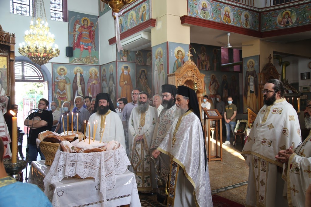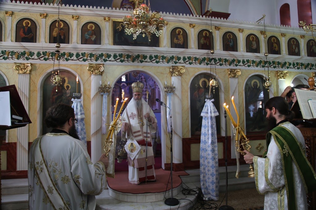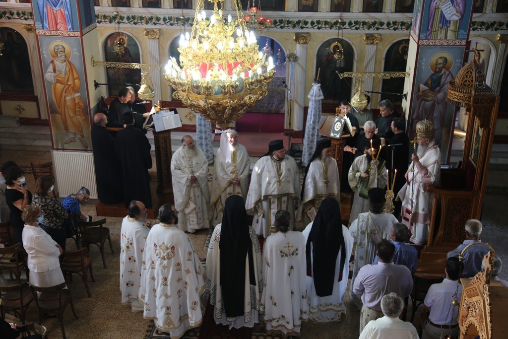 Με τον Σεβασμιώτατο συλλειτούργησαν ο αρχιμ. Θεόκλητος Ράπτης, Αρχιερατικός Επίτροπος Παμφίας, ο αρχιμ. Σιλουανός Ψιλλιάς, Αρχιερατικός Επίτροπος Μακρυνείας, και πολλοί ιερείς της ευρύτερης περιοχής, καθώς και οι διάκονοι π. Παΐσιος Παρασκευάς και π. Μιχαήλ Βραχάς. Τους ύμνους της εορτής απέδωσαν χοροί ιεροψαλτών, υπό την διεύθυνση του κ. Διονυσίου Θανασούλη και του κ. Τριανταφύλλου Λιούλιου.