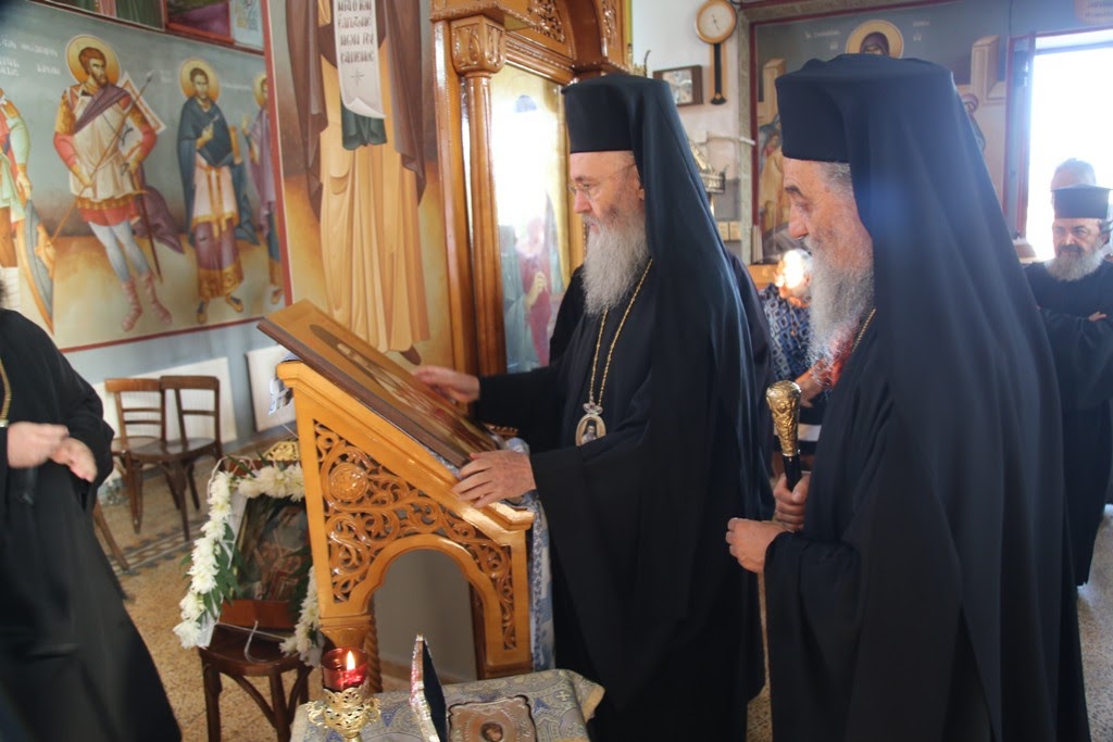 Στον Ιερό Ναό Αγίου Παντελεήμονος Σιταραλώνων ο Σεβασμιώτατος μετέφερε και αφιέρωσε αγιογραφημένη φορητή εικόνα του αγίου Καλλινίκου, προσφορά του ιδίου στον Ιερό Ναό της γενέτειρας του αγίου Γέροντός του και στη συνέχεια χοροστάτησε στην ακολουθία του Όρθρου και προεξήρχε στην πανηγυρική Θεία Λειτουργία.
