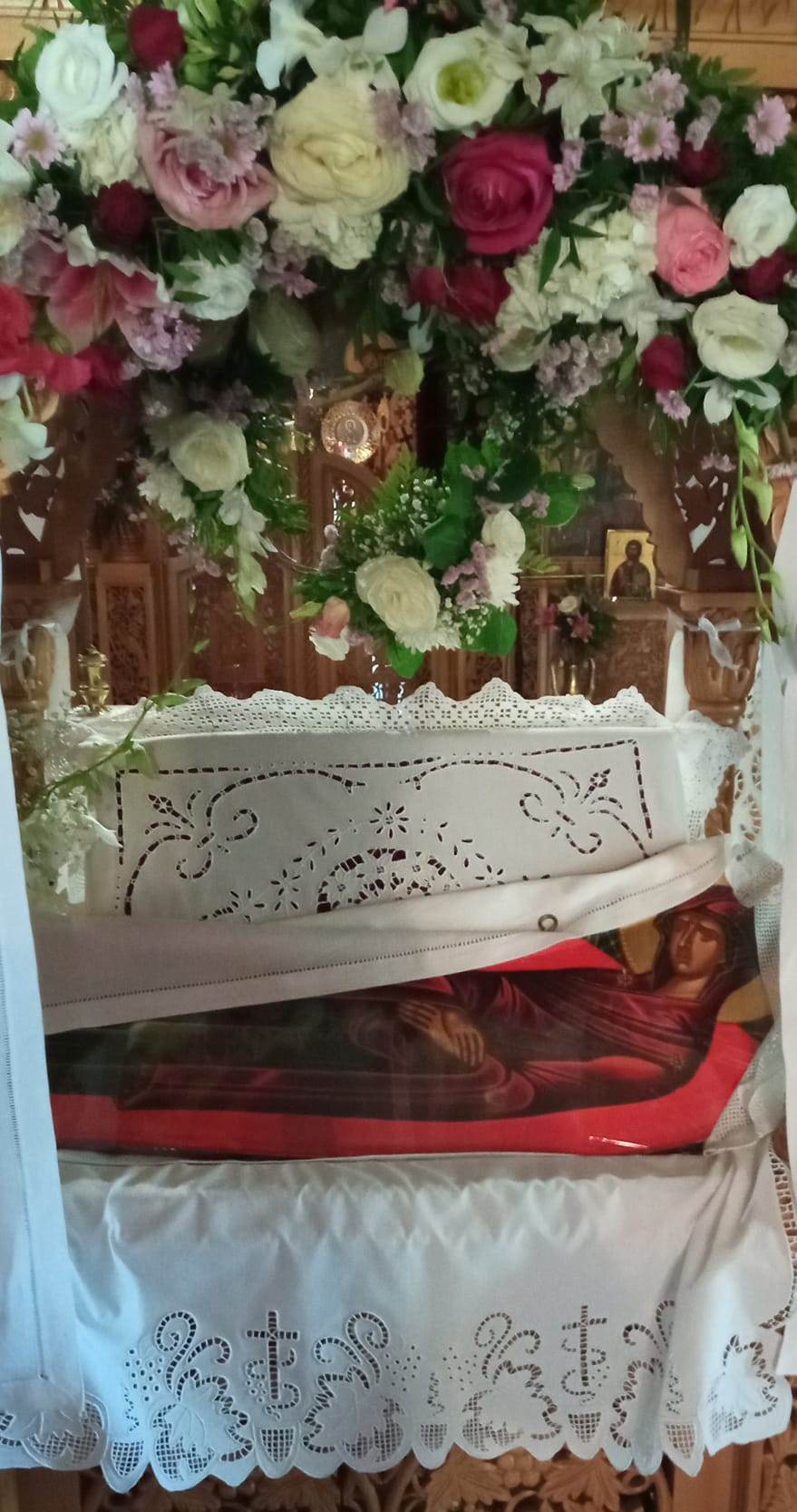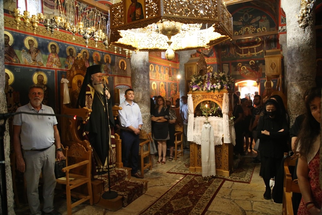 Το βράδυ τελέσθηκε Ιερά Παράκληση με τα Εγκώμια της Παναγίας, ενώ αύριο Δευτέρα πρωί, ανήμερα της μεγάλης εορτής της Κοιμήσεως της Υπεραγίας Θεοτόκου, θα τελεσθεί με κάθε λαμπρότητα, η ακολουθία του Όρθρου και στην συνέχεια η Πανηγυρική Θεία Λειτουργία, με πολλούς πιστούς να προσέρχονται, όπως κάθε χρόνο, με ευλάβεια για να προσκυνήσουν της εικόνα της Παναγίας.