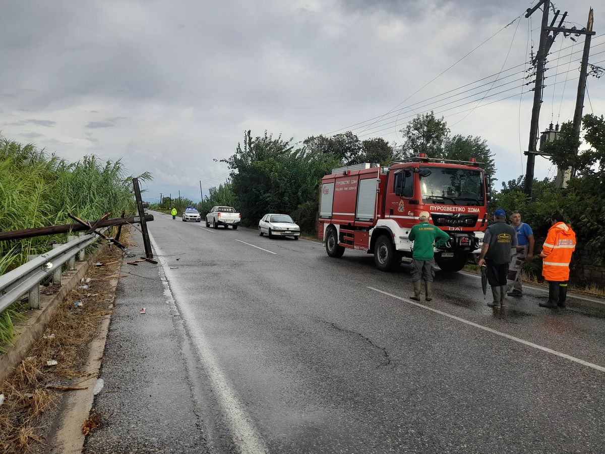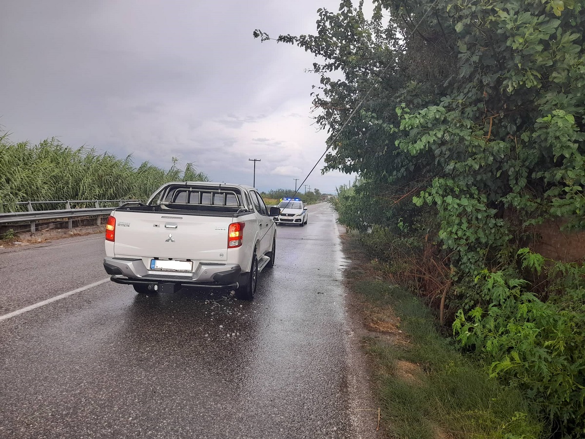 Η σφοδρή απογευματινή βροχόπτωση και οι δυνατοί άνεμοι προκάλεσαν προβλήματα νωρίτερα στο 9ο χλμ. της επαρχιακής οδού Αγρινίου-Καλυβίων, με αποτέλεσμα την πτώση ενός στύλου της ΔΕΗ, ενώ ΙΧ αγροτικό που πέρναγε από το σημείο, με τρεις επιβαίνοντες, ¨μπλέχτηκε¨ στα πεσμένα καλώδια με τον κίνδυνο για τον απεγκλωβισμό τους να είναι μεγάλος.