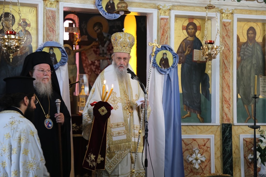Στην ακολουθία του Όρθρου χοροστάτησε ο Επίσκοπος του Οικουμενικού Πατριαρχείου, Ευκαρπίας κ. Ιερόθεος και στην δισαρχιερατική Θεία Λειτουργία προεξήρχε ο Σεβασμιώτατος Τοποτηρητής της Ιεράς Μητροπόλεως Αιτωλίας και Ακαρνανίας, Μητροπολίτης Ναυπάκτου και Αγίου Βλασίου κ. Ιερόθεος, συλλειτουργούντων του Θεοφιλεστάτου κ. Ιεροθέου και κληρικών της Ιεράς Μητροπόλεως Αιτωλίας και Ακαρνανίας και άλλων Μητροπόλεων.