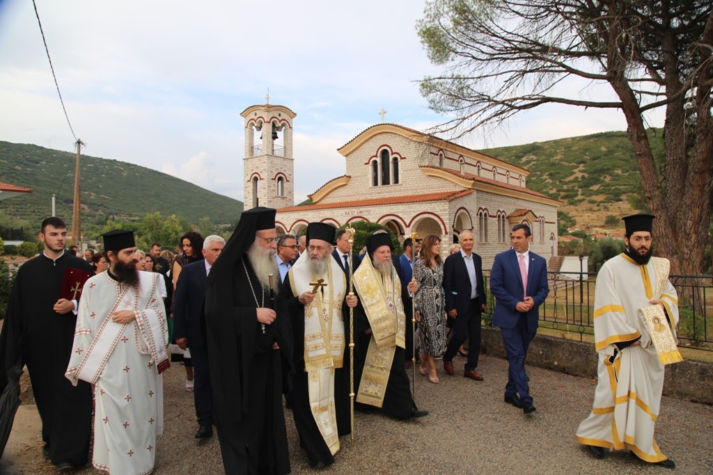 Η ιερά Λιτάνευση ξεκίνησε από τον Ιερό Ναό Αγίου Δημητρίου Θέρμου, όπου τελέσθηκε η ακολουθία του μεθέορτου αρχιερατικού Εσπερινού χοροστατούντος του Επισκόπου Ευκαρπίας κ. Ιεροθέου και συγχοροστατούντος του Σεβασμιωτάτου Τοποτηρητού της Ιεράς Μητροπόλεως Αιτωλίας και Ακαρνανίας, Μητροπολίτου Ναυπάκτου και Αγίου Βλασίου κ. Ιεροθέου.