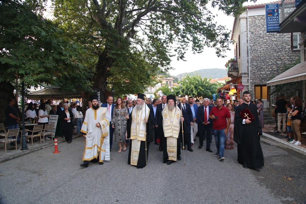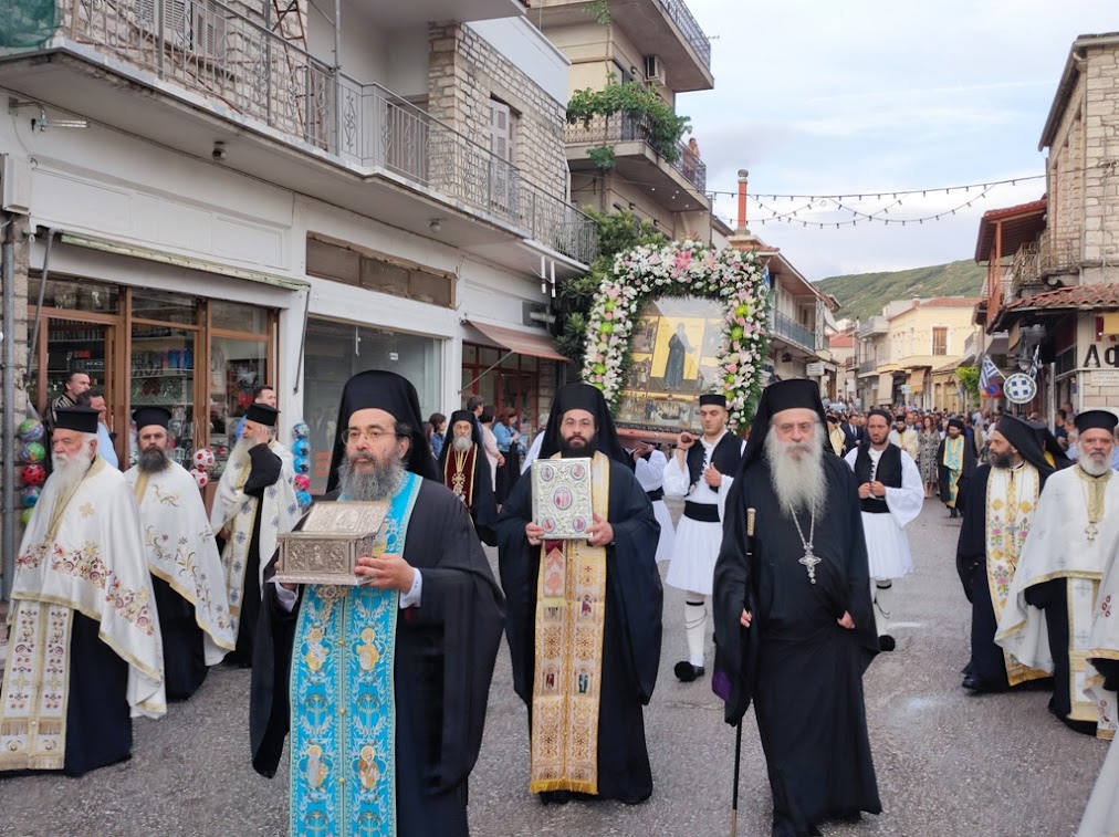 Υπό τους ήχους της Φιλαρμονικής του Δήμου Αγρινίου ξεκίνησε η λιτανευτική πομπή της ιεράς Εικόνας και του χαριτοβρύτου Λειψάνου του Αγίου με κατεύθυνση τον Ιερό Ναό Κοιμήσεως της Θεοτόκου, ενώ προηγουμένως, στην κεντρική πλατεία, ενώπιον των Αρχιερέων, των αρχών του τόπου και του ιερού κλήρου τελέσθηκε αρτοκλασία και μίλησε στους πιστούς ο Μητροπολίτης Ναυπάκτου κ. Ιερόθεος.
