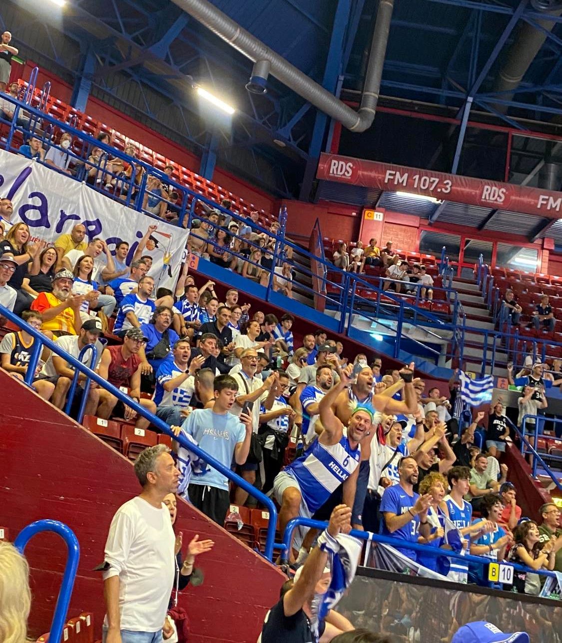Οι Έλληνες φίλαθλοι γέμισαν τις κερκίδες του Mediolanum Forum και μαζί τους η ¨Καλυβιώτισα¨ Βανέσα Ν. Τουρλίδα που έζησε από κοντά την ¨ατμόσφαιρα¨ μας είπε τα εξής: «Ο αγώνας είχε πολύ ενδιαφέρον και αρκετή αγωνία, κυρίως προς το τέλος. Το γήπεδο ήταν γεμάτο με Έλληνες που ένθερμα πανηγύριζαν για κάθε καλάθι της ομάδας μας. Οι πανηγυρισμοί ήταν ακόμα πιο έντονοι όταν έπαιρνε την μπάλα ο Αντετοκούνμπο ο οποίος για ακόμα μια φορά ήταν εξαιρετικός».