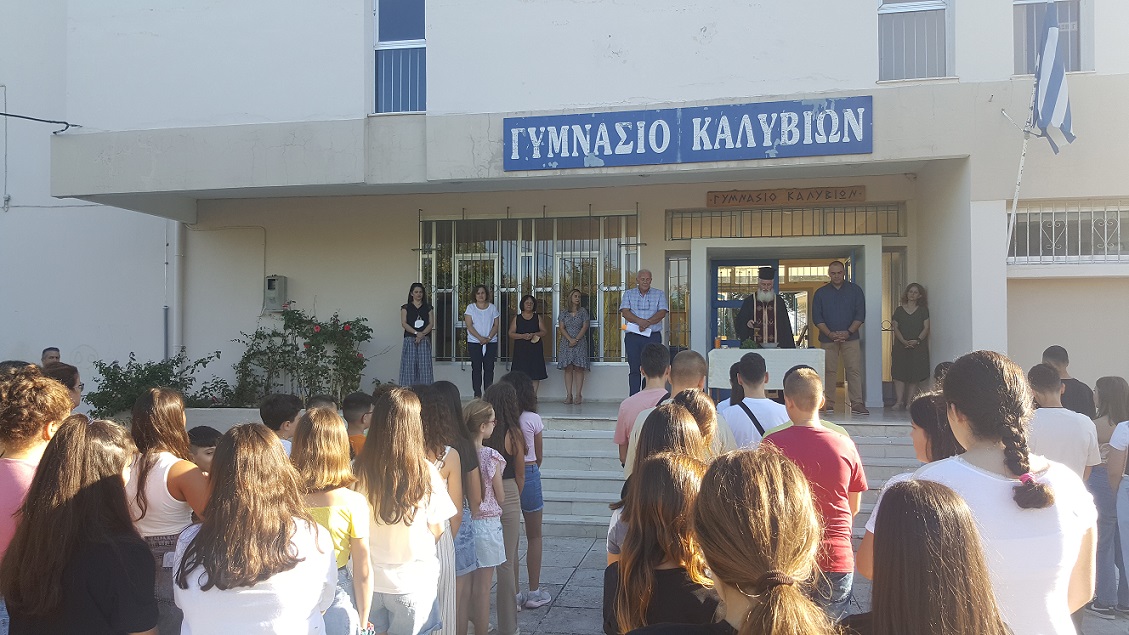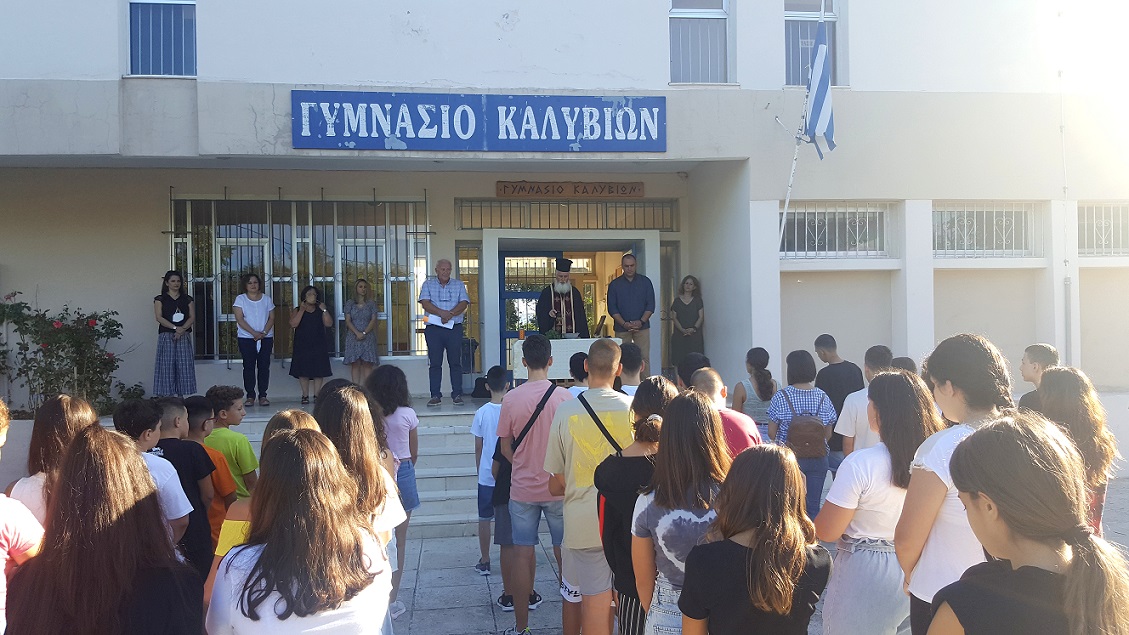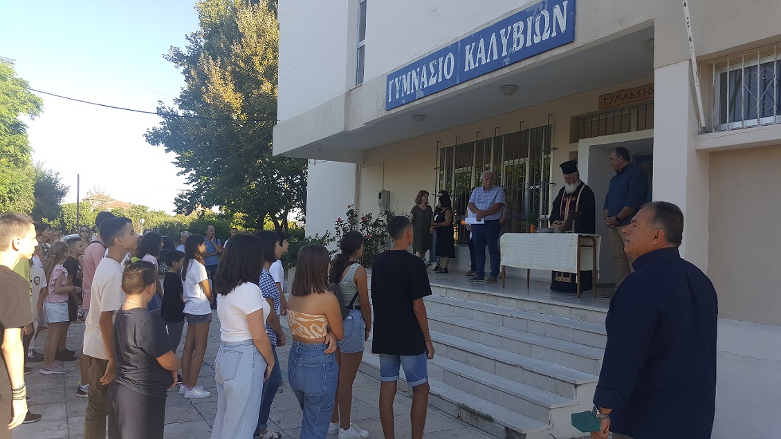 Στο Γυμνάσιο Καλυβίων Αγρινίου πραγματοποιήθηκε σήμερα ο Αγιασμός για το νέο σχολικό έτος, παρουσία εκπαιδευτικών, μαθητών και γονέων.