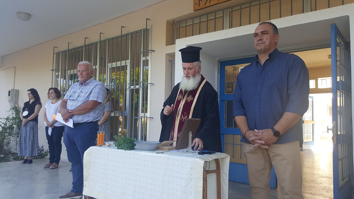 Τον αγιασμό τέλεσε στον προαύλιο χώρο, ο πατήρ Θεοδόσιος Αθανασόπουλος, ο οποίος ευχήθηκε καλή επιτυχία στους εκπαιδευτικούς στο παιδαγωγικό και πνευματικό τους έργο, ενώ στους μαθητές ευχήθηκε αντίστοιχα καλές σχολικές επιδόσεις.