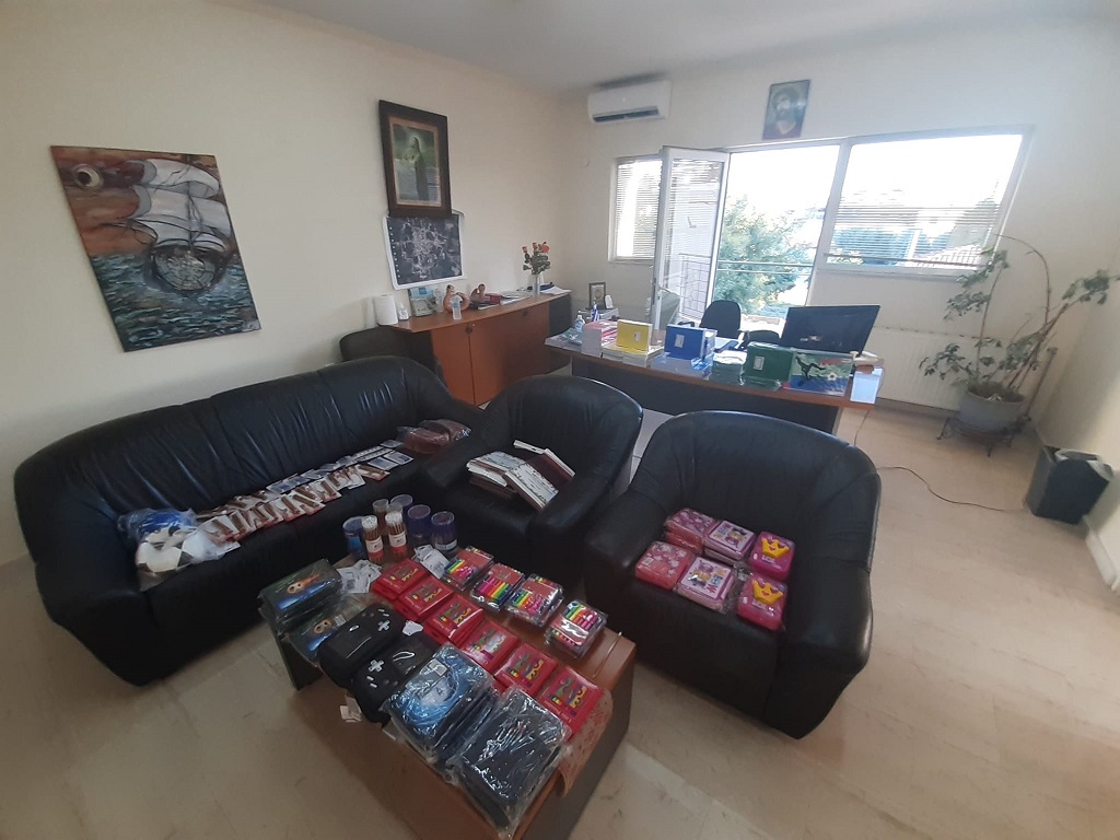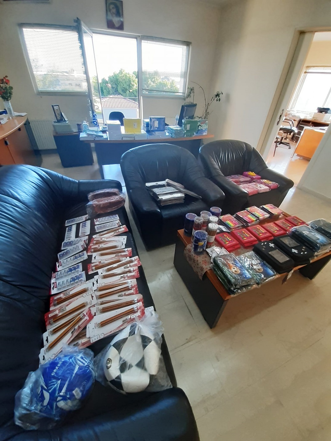 Τετράδια, σχολικές τσάντες, μολύβια και στυλό, κασετίνες, αθλητικά είδη κ.α. που θα δοθούν σε παιδιά του χωριού μας.