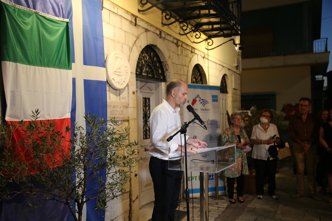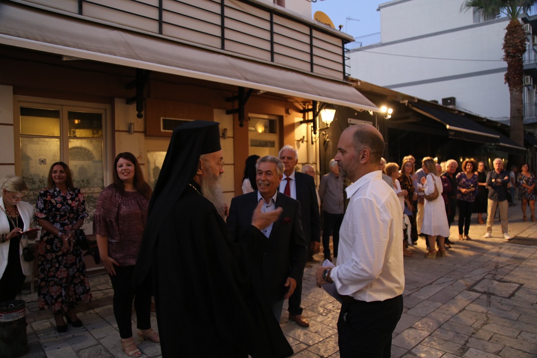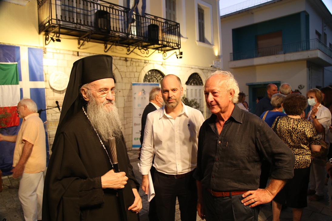 Στην όμορφη τελετή των εγκαινίων που πραγματοποιήθηκε στον πεζόδρομο της "Διεξόδου", ο Μητροπολίτης Ναυπάκτου & Αγ. Βλασίου κ. Ιερόθεος - Τοποτηρητής της Μητροπόλεως Αιτωλίας & Ακαρνανίας, στην προσλαλιά του, μετέφερε τις ευχές του Μακαριωτάτου Αρχιεπισκόπου Αθηνών και πάσης Ελλάδος κ. Ιερωνύμου, τον όποιο εκπροσωπούσε και αναφέρθηκε σε κοινά πολιτιστικά, φιλοσοφικά και ιστορικά στοιχεία της Ιταλίας και της Ελλάδος.
