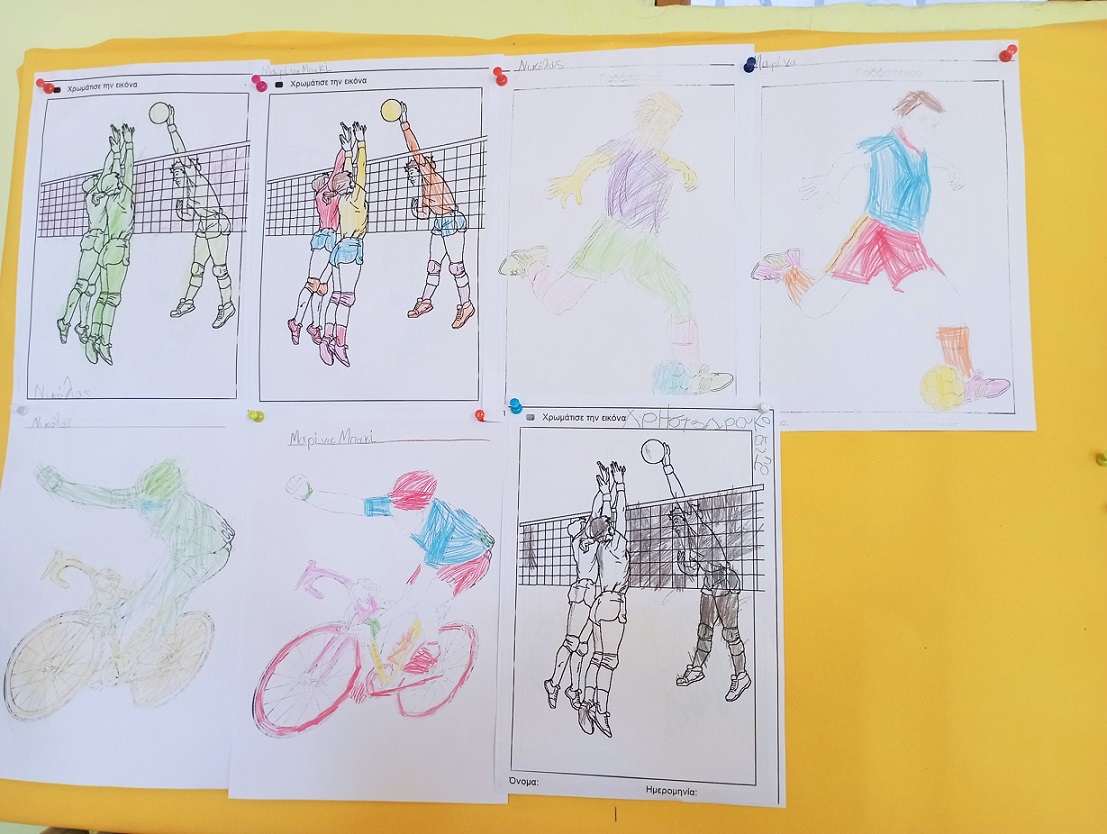 Με τους εκπαιδευτικούς γνώρισαν κι έπαιξαν παραδοσιακά παιχνίδια από διάφορα μέρη του πλανήτη: Το Φίδι (από την Αφρική), Μπάλα στον αέρα (από Αργεντινή), Γόρδιος Δεσμός (από Φιλιππίνες) και ζωγράφισαν με θέμα τον αθλητισμό. Τέλος, ο Αθλίατρος κος Ψειμάδας Νεκτάριος δέχτηκε την πρόσκληση και τον ευχαριστούμε που ήρθε στο σχολείο μας. Μίλησε για όλα τα οφέλη της άθλησης, την σωστή εκγύμναση, την πρόληψη αλλά και την αντιμετώπιση των κακώσεων και τραυματισμών που προκύπτουν κατά την άθληση».