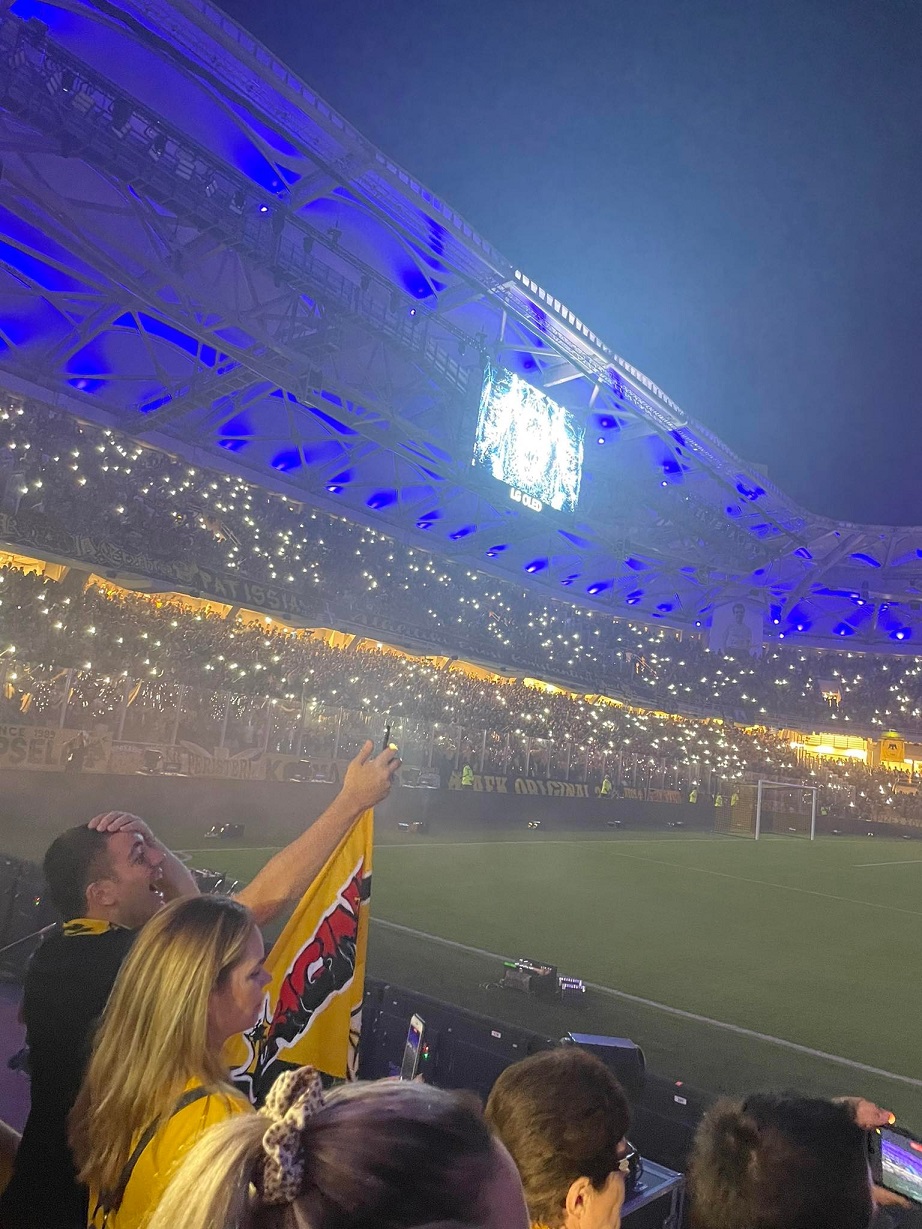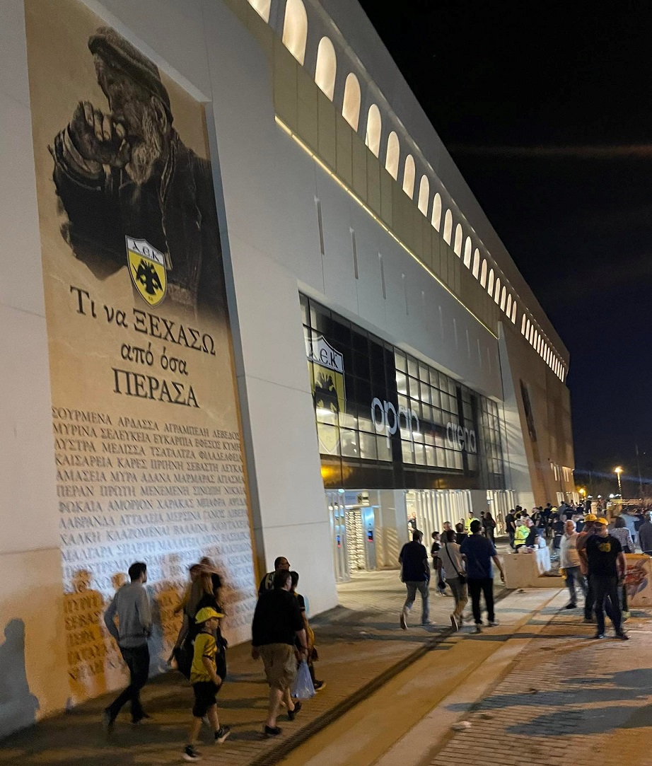 Εντυπωσιασμένος, όπως και ο γιος του Γιώργος που ήταν μαζί του, καθώς και χιλιάδες άλλοι φίλαθλοι που συμμετείχαν σε αυτή την λαμπρή εκδήλωση, παρακολούθησαν τις εκδηλώσεις που περιελάμβαναν ιστορικές αναφορές στην Μικρασία και την Κωνσταντινούπολη, τους Έλληνες πρόσφυγες και τον ξεριζωμό του 1922, στην ίδρυση της ΑΕΚ, στις παλιές δόξες και παλαίμαχους της ομάδας, στην σύγχρονη ¨εικόνα¨ του συλλόγου και οι προσδοκίες 20 χρόνων που δικαιώθηκαν ώστε η ομάδα να αποκτήσει το νέο της υπερσύγχρονο στάδιο!