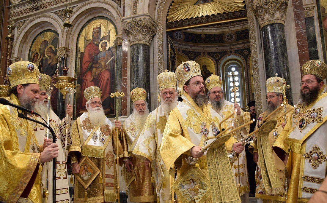 Με τον Μακαριώτατο συλλειτούργησαν οι Σεβασμιώτατοι Μητροπολίτες Σάμου και Ικαρίας κ. Ευσέβιος, Δημητριάδος και Αλμυρού κ. Ιγνάτιος, Σιδηροκάστρου κ. Μακάριος, Νεαπόλεως και Σταυρουπόλεως κ. Βαρνάβας, Λευκάδος και Ιθάκης κ. Θεόφιλος, Νέας Ιωνίας κ. Γαβριήλ, Λαρίσης κ. Ιερώνυμος και Πολυανής και Κιλκισίου κ. Βαρθολομαίος.