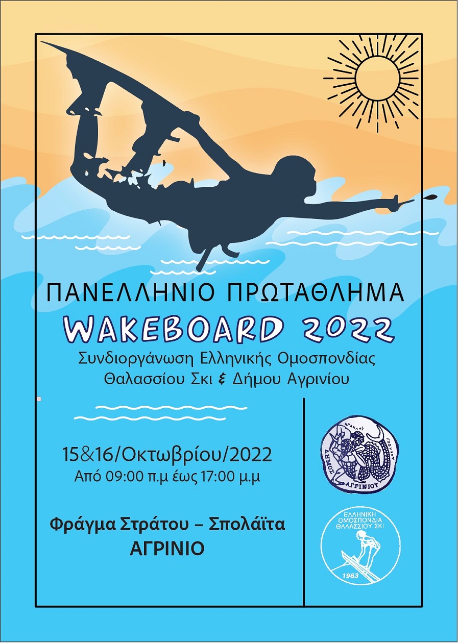 Η Ελληνική Ομοσπονδία Θαλασσίου Σκι, σε συνεργασία με τον Δήμο Αγρινίου, διοργανώνει τo Πανελλήνιο Πρωτάθλημα Wakeboard όλων των κατηγοριών, το προσεχές Σαββατοκύριακο 15 και 16 Οκτωβρίου, στο Προπονητικό Κέντρο Θαλασσίου Σκι στην Λίμνη Στράτου, κοντά στο Αγρίνιο Αιτωλοακαρνανίας.