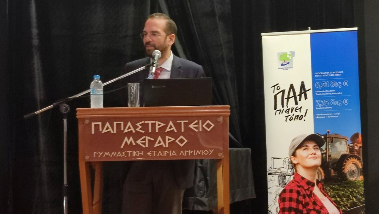 Πραγματοποιήθηκε σήμερα Τρίτη 1η Νοεμβρίου, στο Παπαστράτειο Μέγαρο Αγρινίου, ημερίδα με θέμα «Νέοι αγρότες – νέες χρηματοδοτικές ευκαιρίες από το Π.Α.Α.», παρουσία του Υφυπουργού ΥΠ.Α.Α.Τ. Γιώργου Στύλιου και του Γ.Γ. Ενωσιακών Πόρων και Υποδομών Δημήτρη Παπαγιαννίδη.