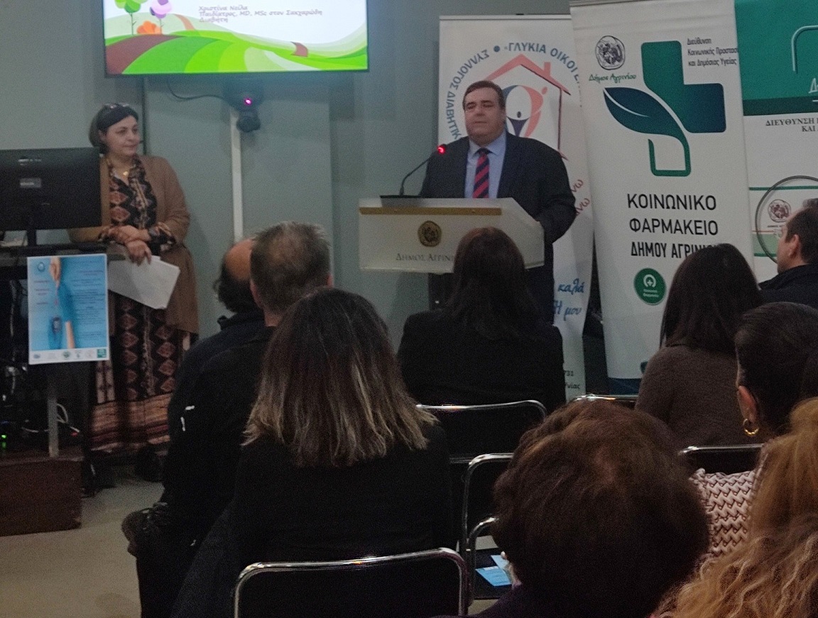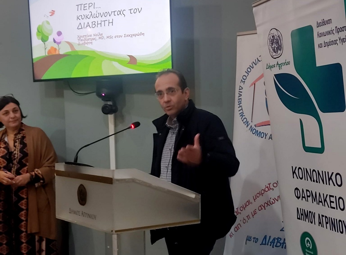 Το Κοινωνικό Ιατρείο -Φαρμακείο της Διεύθυνσης Κοινωνικής Προστασίας και Δημόσιας Υγείας του Δήμου Αγρινίου δίνοντας έμφαση στις δράσεις ευαισθητοποίησης και ενημέρωσης του γενικού πληθυσμού σήμερα 14 Νοέμβρη, Παγκόσμια Ημέρα Διαβήτη, πραγματοποίησε με μεγάλη επιτυχία εκδήλωση με θέμα: «Ο σακχαρώδης διαβήτης στη ζωή μας».