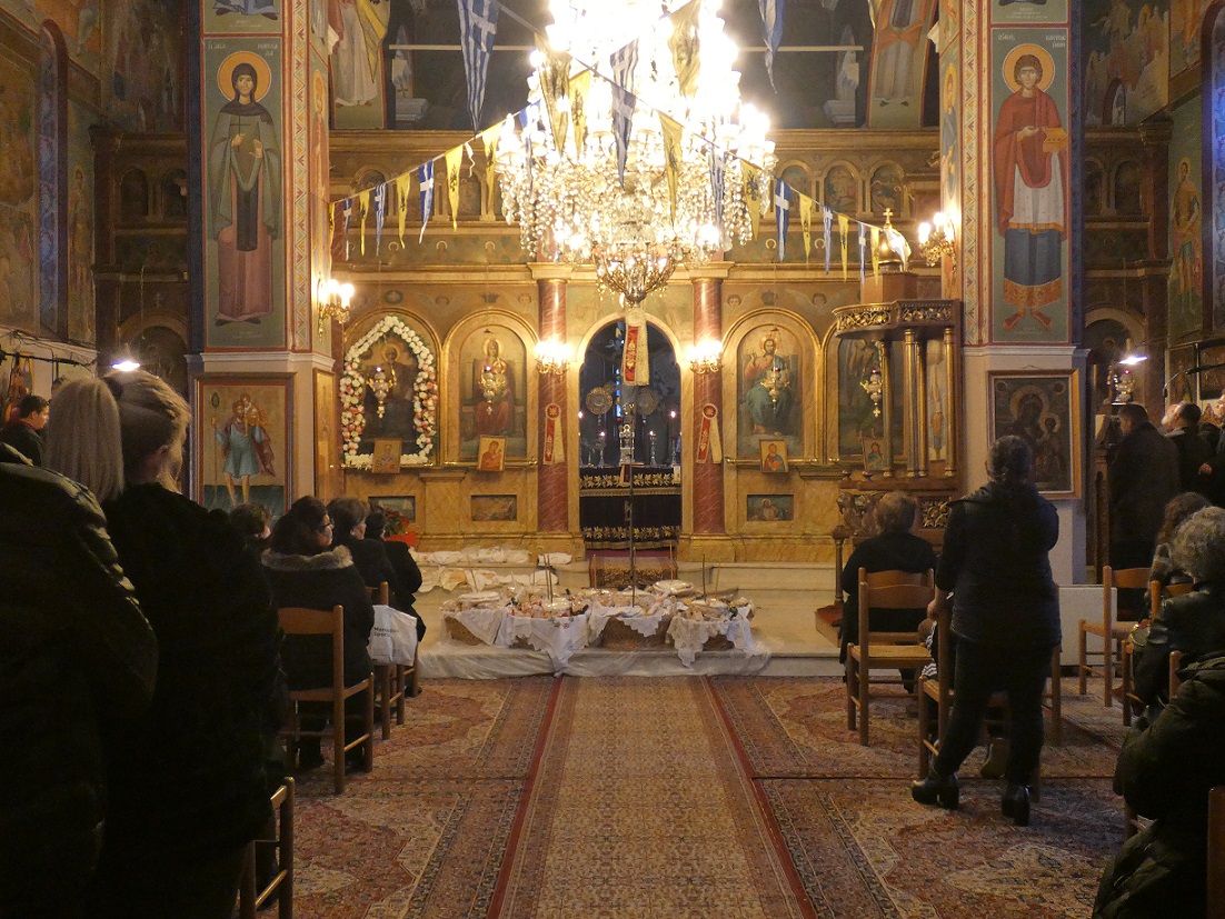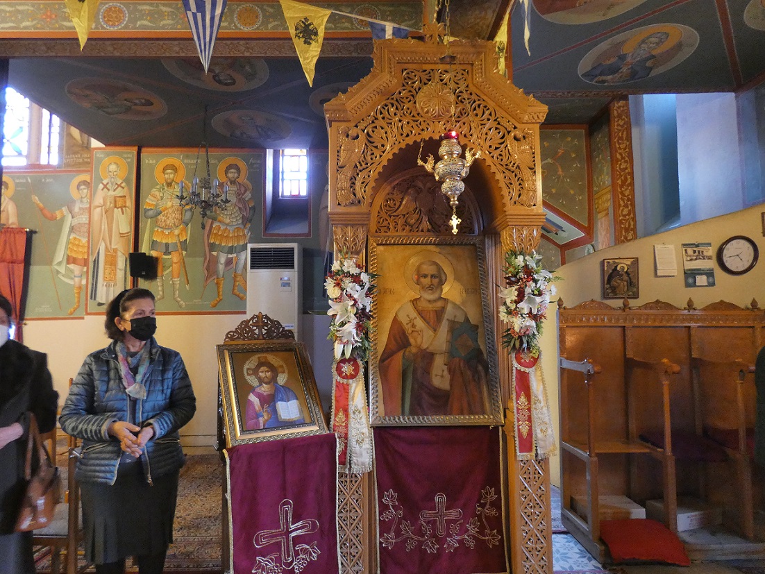 Στον Ι.Ν. Αγίου Νικολάου από τον ιερέα π. Θεοδόσιο Αθανασόπουλο, και τον Πρεσβύτερο π. Σιλουανό Ψιλιά, εψάλη ο Μέγας Πανηγυρικός Εσπερινός μετ’ αρτοκλασίας, ενώ ακούστηκε στη συνέχεια το κήρυγμα της ημέρας.