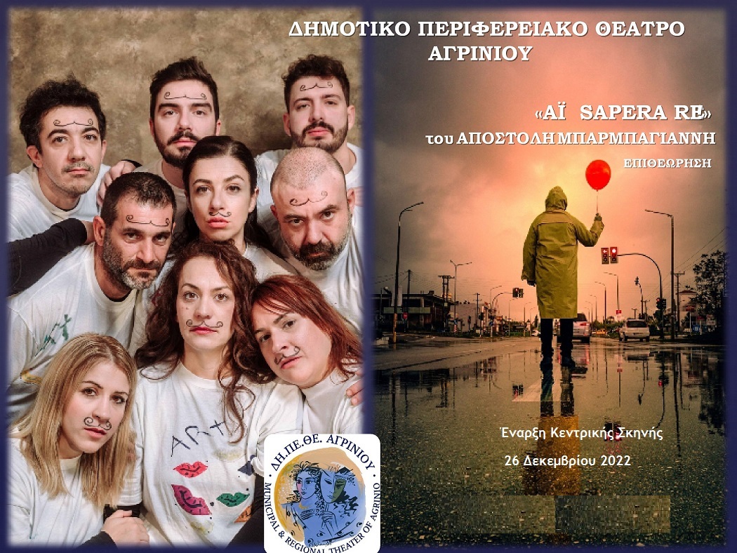 Το Δη.Πε.Θε. Αγρινίου ανοίγει την αυλαία της Κεντρικής του Σκηνής την Δευτέρα 26 Δεκεμβρίου 2022, στις 9.15 μ.μ. με την επιθεώρηση «AΪ SAPERA RE!» του Αποστόλη Μπαρμπαγιάννη, στην αίθουσα του Δημοτικού Θεάτρου.