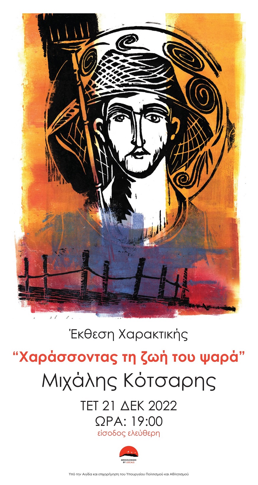 Την Τετάρτη 21 Δεκεμβρίου στις 19:00 θα πραγματοποιηθούν στο Μεσολόγγι, τα εγκαίνια της έκθεσης με τίτλο «Χαράσσοντας τη ζωή του ψαρά» του Εικαστικού - Χαράκτη Μιχάλη Κότσαρη, στον Τοπικό Κόμβο Local HUB, του Messolonghi By Locals.