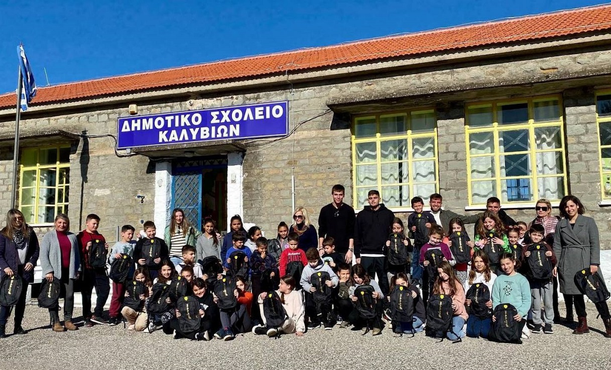 Μια ευχάριστη έκπληξη περίμενε σήμερα τους μικρούς μαθητές και τους δασκάλους του Δημοτικού Σχολείου Καλυβίων, καθώς αντιπροσωπεία ποδοσφαιριστών της ομάδας του Παναιτωλικού, επισκέφθηκαν το σχολείο και προσέφεραν σακίδια και αθλητικό εξοπλισμό.