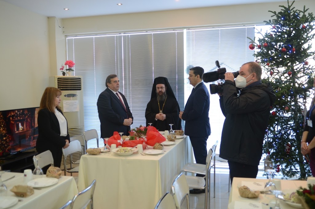 Ευχαρίστησε τον κ. Διοικητή, τους ιατρούς, τους νοσηλευτές και ευχήθηκε σε όλους καλά και ευλογημένα Χριστούγεννα. Ευχήθηκε επίσης σύντομα να τεθεί ο θεμέλιος λίθος του Παρεκκλησίου του Νοσοκομείου και εκεί να τελούνται το Μυστήριο της Θείας Ευχαριστίας και όλες οι αγιαστικές πράξεις της Εκκλησίας μας.