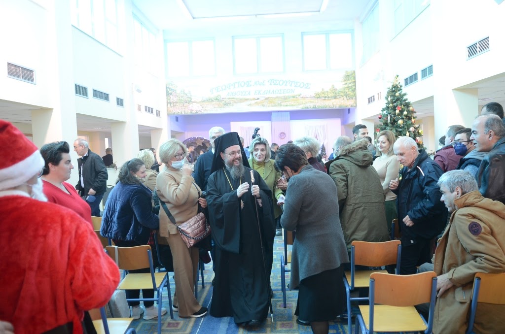 Στη συνέχεια ο Σεβασμιώτατος μετέβη στις εγκαταστάσεις του Εργαστηρίου Ειδικής Επαγγελματικής Αγωγής και Αποκαταστάσεως για νέους με νοητική υστέρηση «Παναγία Ελεούσα» και παρακολούθησε τη χριστουγεννιάτικη εκδήλωση.