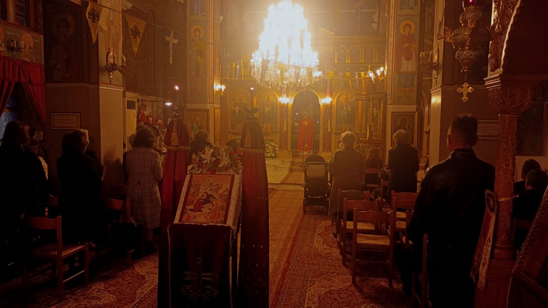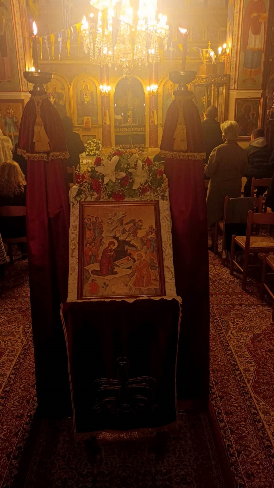 Με κατάνυξη και την πρέπουσα Ιεροπρέπεια τελέσθηκε το πρωί ο Όρθρος και η Θεία Λειτουργία των Χριστουγέννων, από τον ιερέα π. Θεοδόσιο Αθανασόπουλο, συνοδεία των ιεροψαλτών, στον Ιερό Ναό του Αγίου Νικολάου Καλυβίων, παρουσία πολλών πιστών.