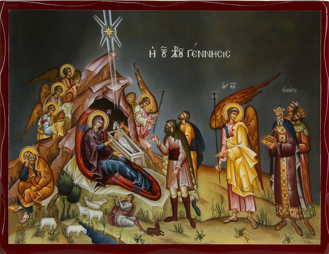 Ἡ Γέννησίς σου Χριστὲ ὁ Θεὸς ἡμῶν, ἀνέτειλε τῷ κόσμῳ, τὸ φῶς τὸ τῆς γνώσεως· ἐν αὐτῇ γὰρ οἱ τοῖς ἄστροις λατρεύοντες, ὑπὸ ἀστέρος ἐδιδάσκοντο, σὲ προσκυνεῖν, τὸν Ἥλιον τῆς δικαιοσύνης, καὶ σὲ γινώσκειν ἐξ ὕψους ἀνατολήν. Κύριε δόξα σοι.