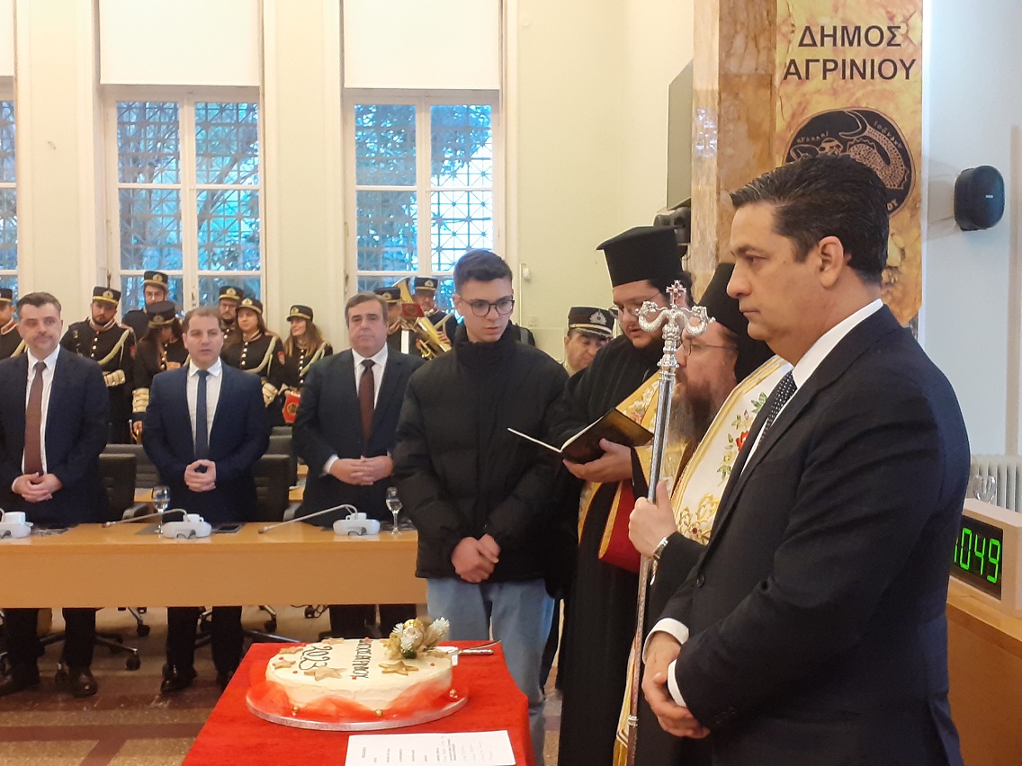 Η κοπή της πρωτοχρονιάτικης πίτας Δήμου Αγρινίου πραγματοποιήθηκε σήμερα, παρουσία του Δήμαρχου Αγρινίου, Γιώργου Παπαναστασίου, του Μητροπολίτη κ. Δαμασκηνού που ευλόγησε την βασιλόπιτα, Αντιδημάρχων, μελών του Δημοτικού Συμβουλίου, καθώς και εκπροσώπων των τοπικών αρχών, στην αίθουσα συνεδριάσεων του Δημοτικού Συμβουλίου, υπό τους ήχους της Φιλαρμονικής Ορχήστρας.