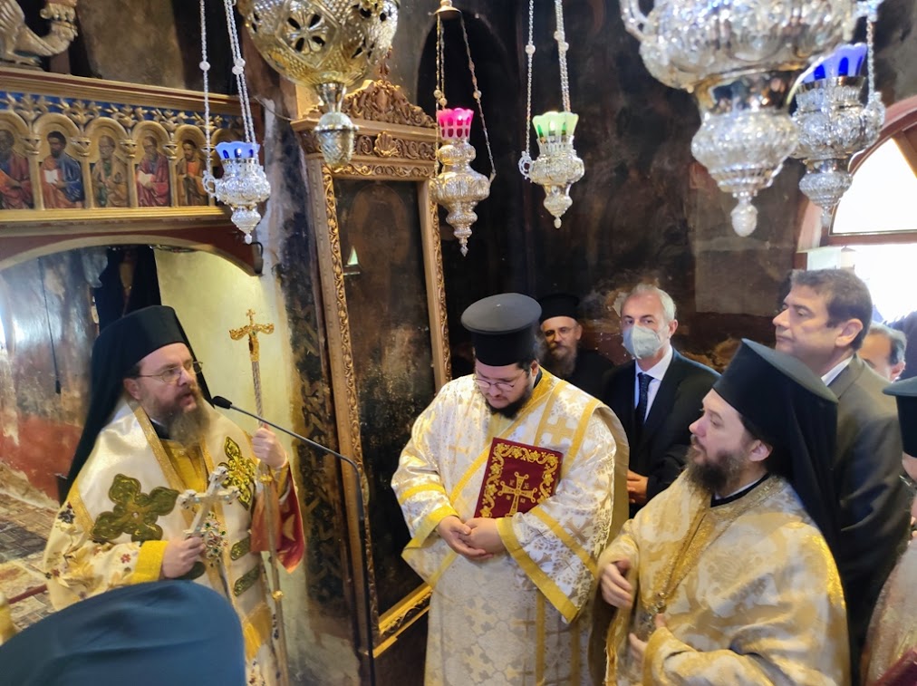 Ο Σεβασμιώτατος κατά την Απόλυση προσέφερε στην Ιερά Μονή μια ράβδο και ένα αρχιερατικό Εγκόλπιο του Μακαριστού Κοσμά για να παραμείνουν στο Κειμηλιαρχείο της Μονής.