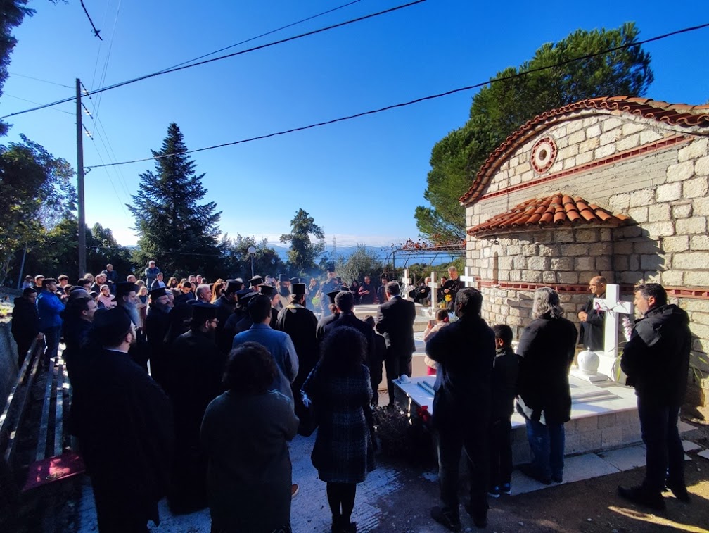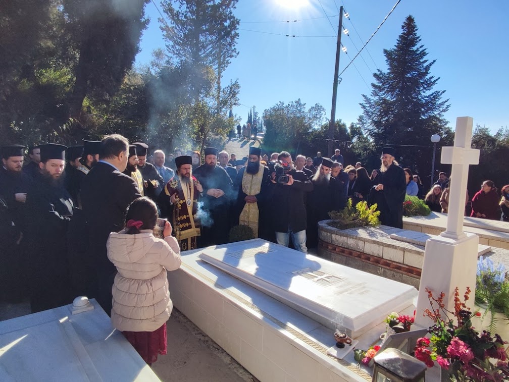 Μετά την απόλυση της Θείας Λειτουργίας τελέσθηκε τρισάγιο στον τάφο του αειμνήστου Μητροπολίτου που βρίσκεται στο Κοιμητήριο της Μονής.