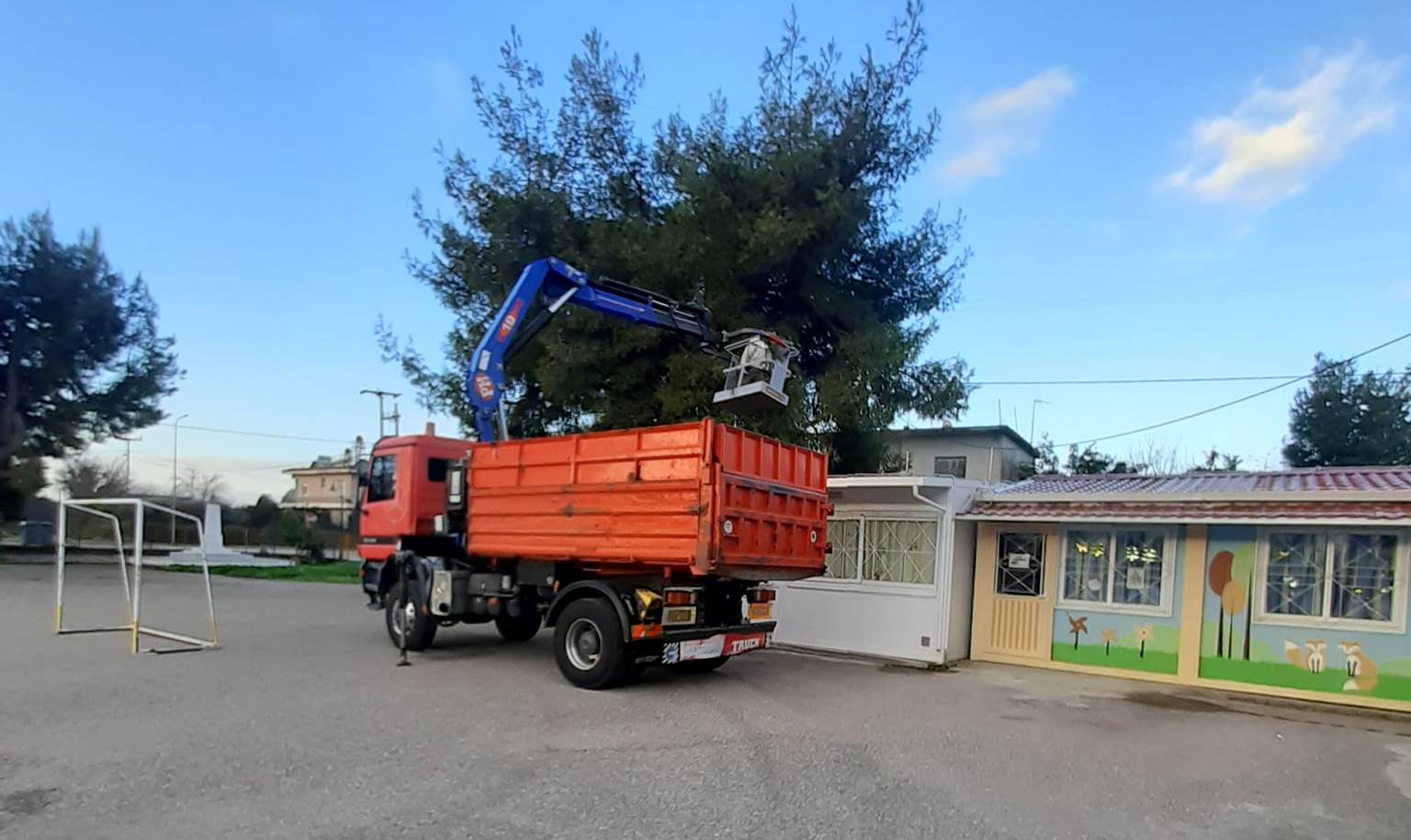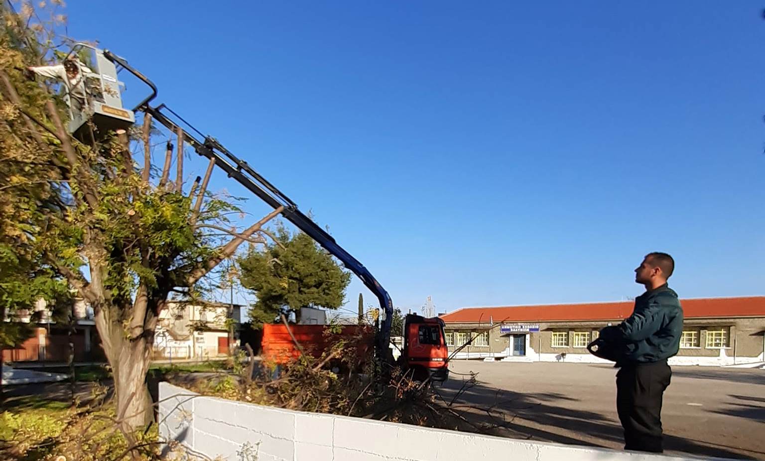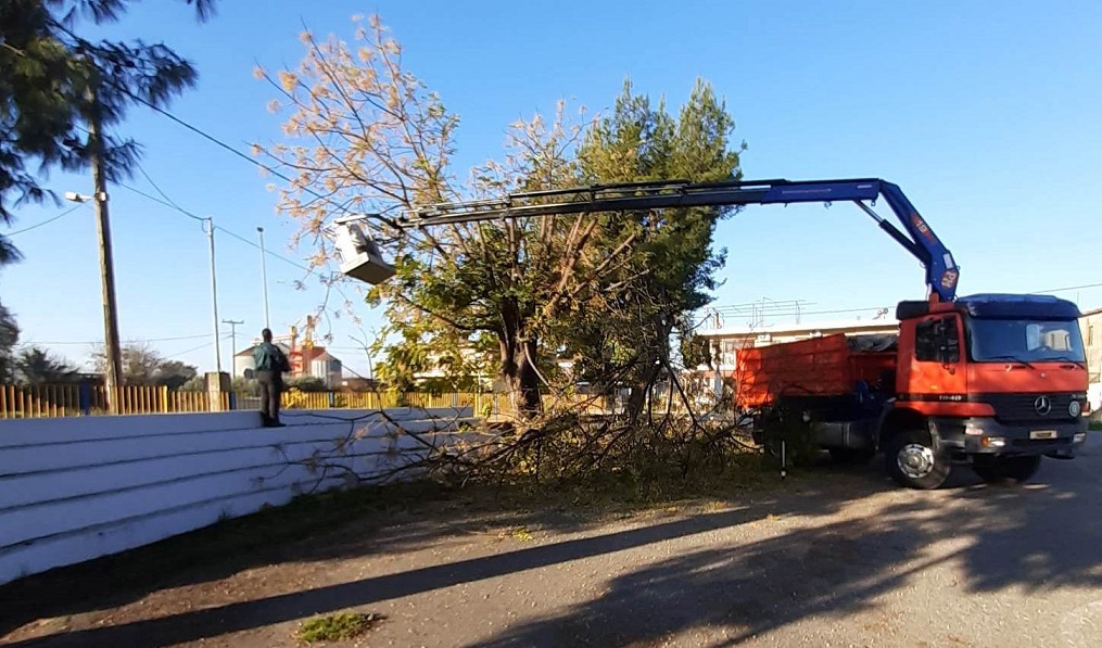 Διάφορες εργασίες κλαδεύσεων στον προαύλιο χώρο του Δημοτικού Σχολείου Καλυβίων και καθαρισμού - διάνοιξης αγροτικής οδού, κοντά στον ΒΙΟΚΑ (Βιολογικό), πραγματοποιήθηκαν σήμερα από την υπηρεσία Πρασίνου και την Τεχνική υπηρεσία του δήμου Αγρινίου.