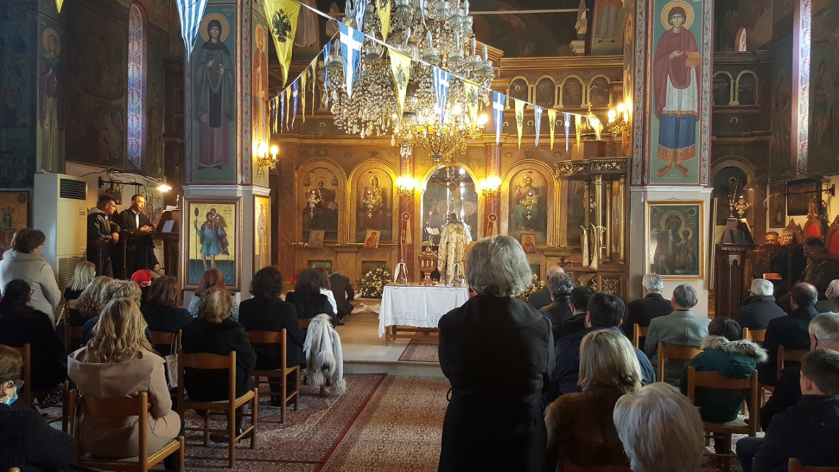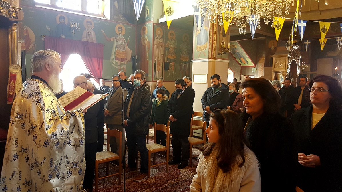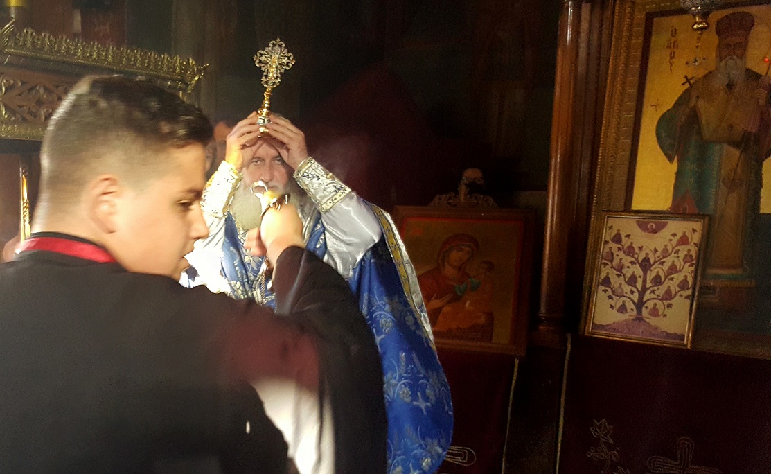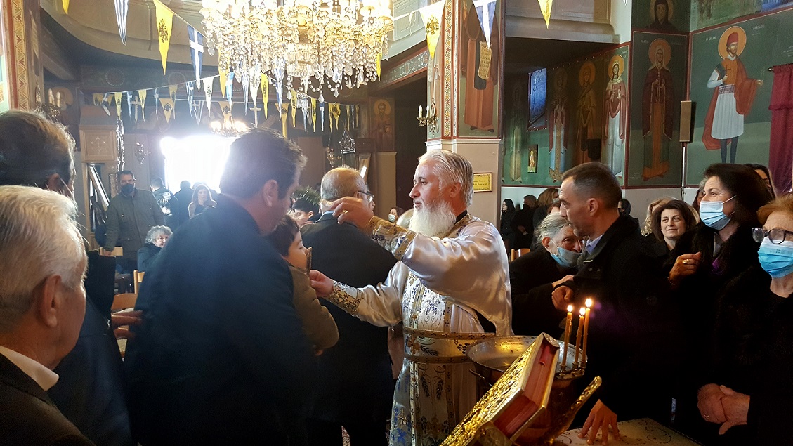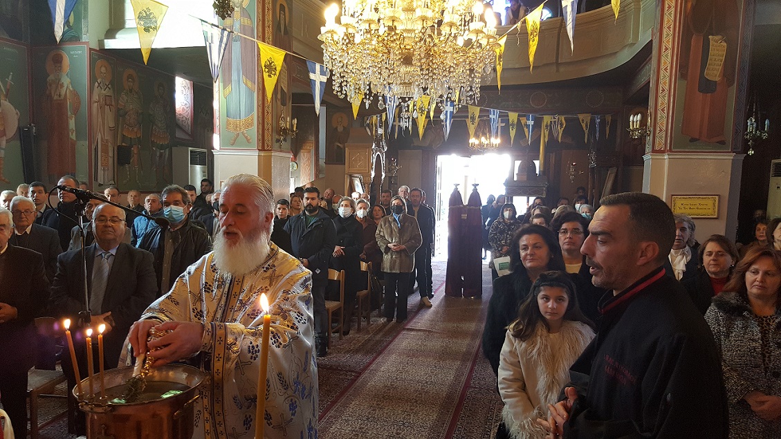 Τις ιερές ακολουθίες τέλεσε ο ιερέας π. Θεοδόσιος Αθανασόπουλος, συνοδεία των ιεροψαλτών, ενώ μετά το πέρας του Αγιασμού και της κατάδυσης του Τιμίου Σταυρού, που τελέσθηκε εντός του ναού, οι πιστοί ασπάσθηκαν τον Σταυρό και πήραν την ευλογία από τον ιερέα, ενώ μπορούσαν να πάρουν αγιασμένο νερό από νιπτήρες που είχαν τοποθετηθεί στον προαύλιο χώρο.