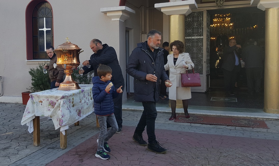 Κατά τη διάρκεια της ημέρας στους οικισμούς Αγίου Γεωργίου και Πλατάνου Καλυβίων, πραγματοποιήθηκε ο Αγιασμός των κατοικιών από τον ιερέα του χωριού μας. Με την Πρωτάγιαση, ο ιερέας γυρίζει όλα τα σπίτια και με το Σταυρό και ένα κλωνί βασιλικό «αγιάζει» ή «φωτίζει» (ραντίζει) τους χώρους των σπιτιών για να φύγει μακριά κάθε κακό.