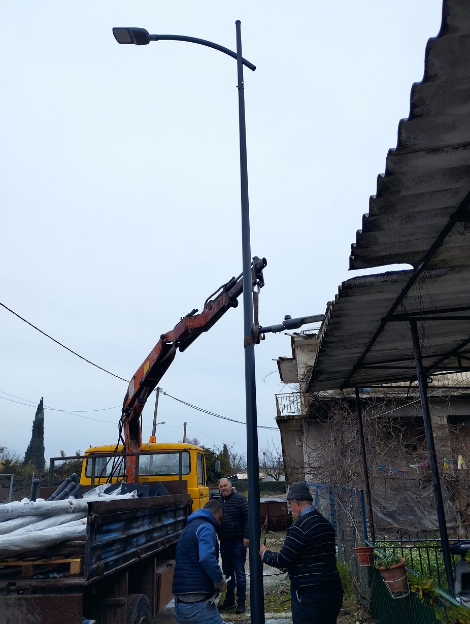 Τεχνικό συνεργείο του εργολάβου που έχει αναλάβει το έργο από τον δήμο Αγρινίου, παρά τον βροχερό καιρό, προέβη στην εγκατάσταση των στύλων και τις ηλεκτρολογικές εργασίες επί της οδού και σε μήκος περίπου 100 μέτρων.